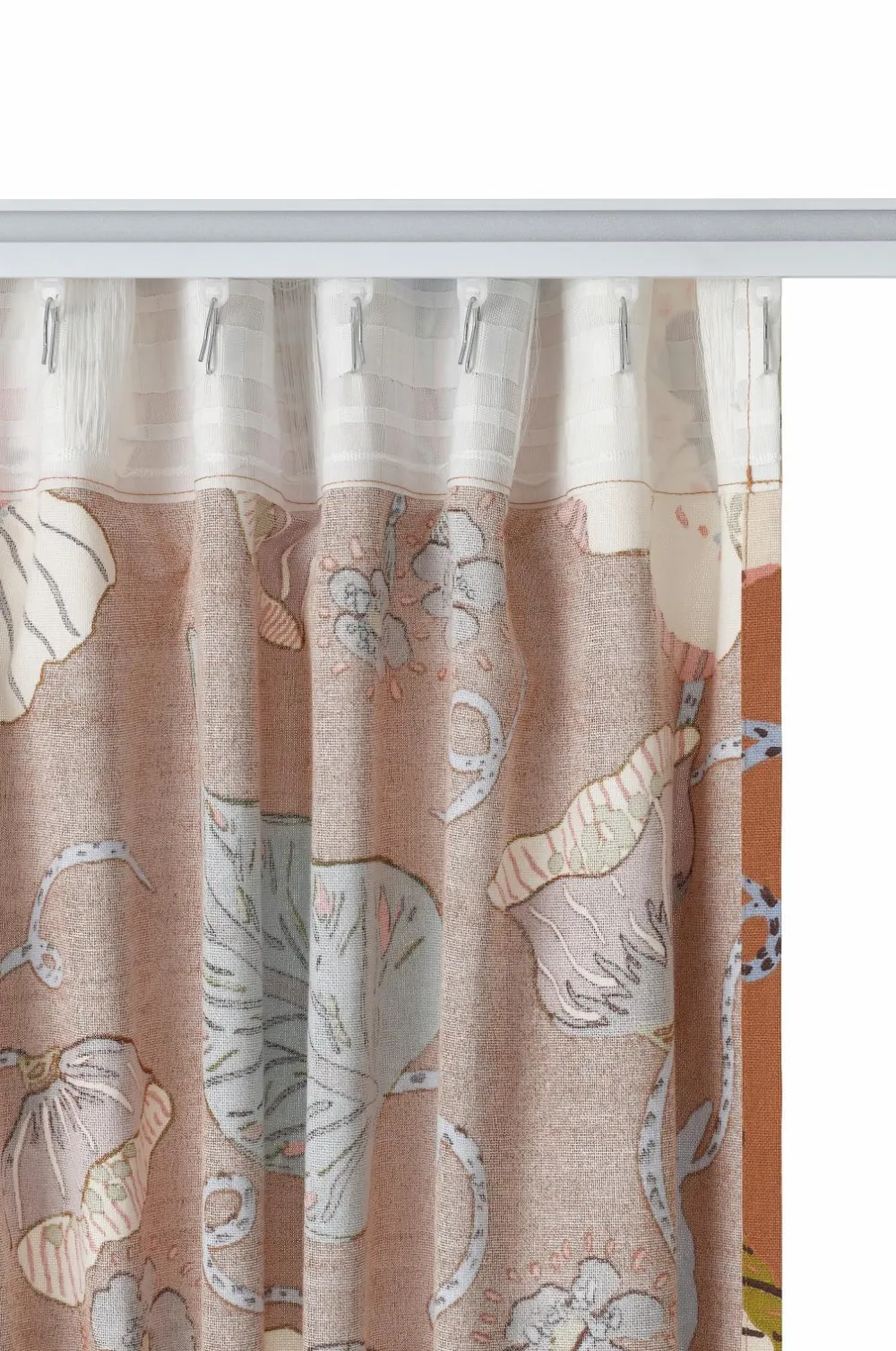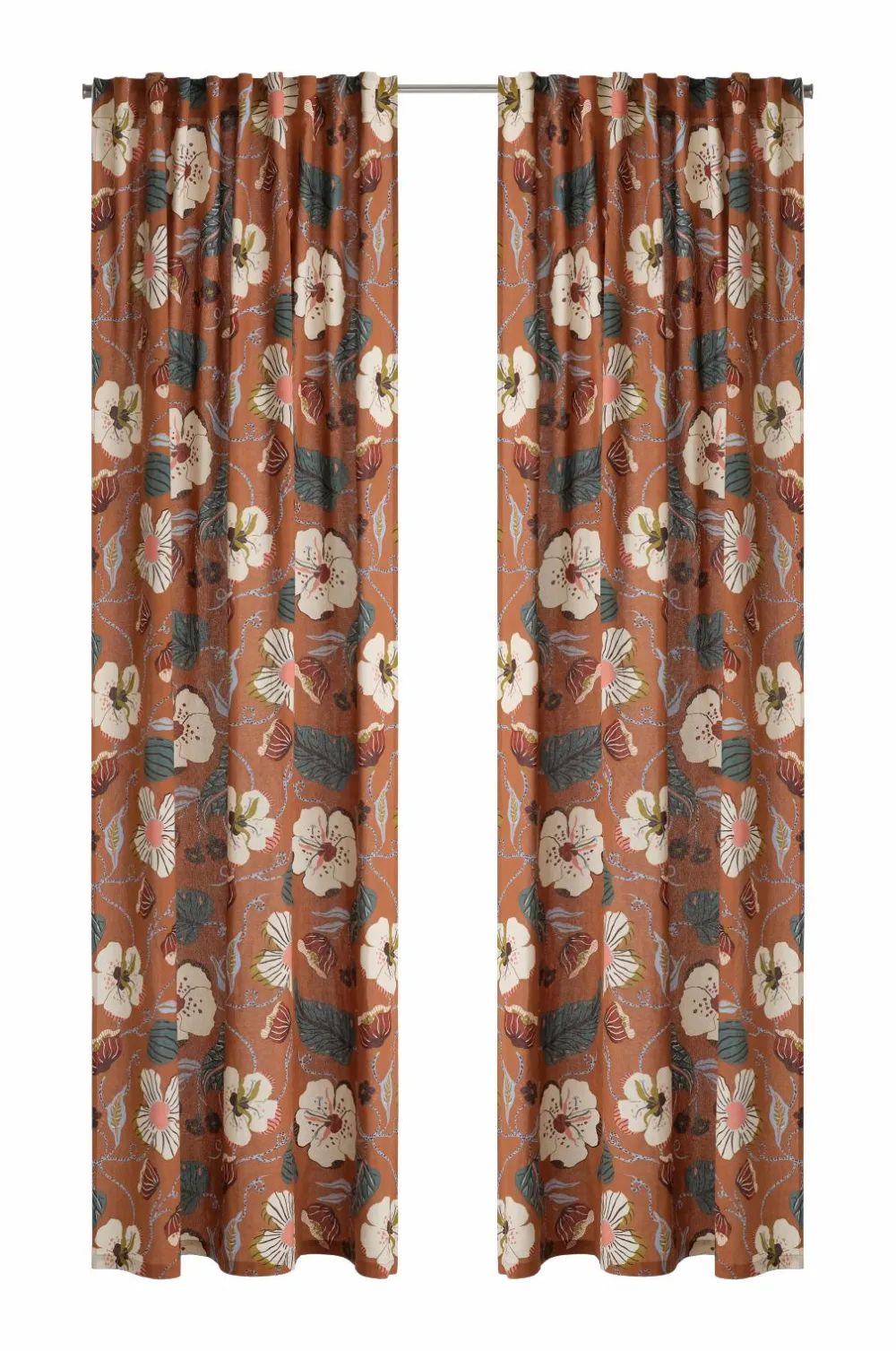 • To Multibåndsgardiner i lidt stærkere halvpanama med printet blomstermønster