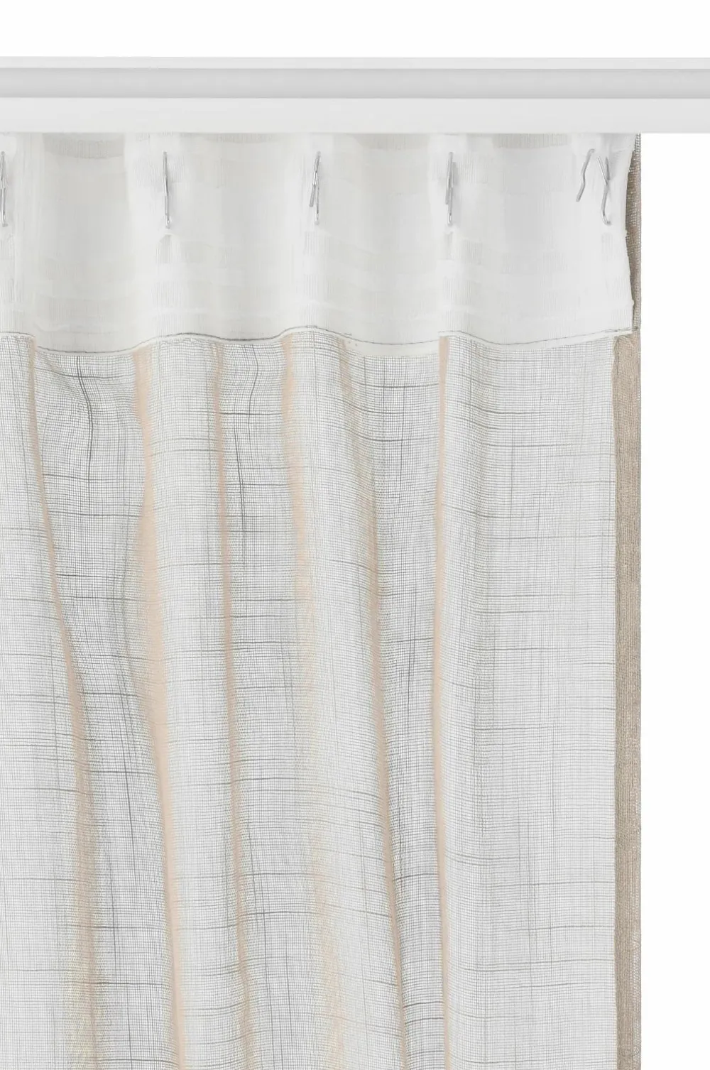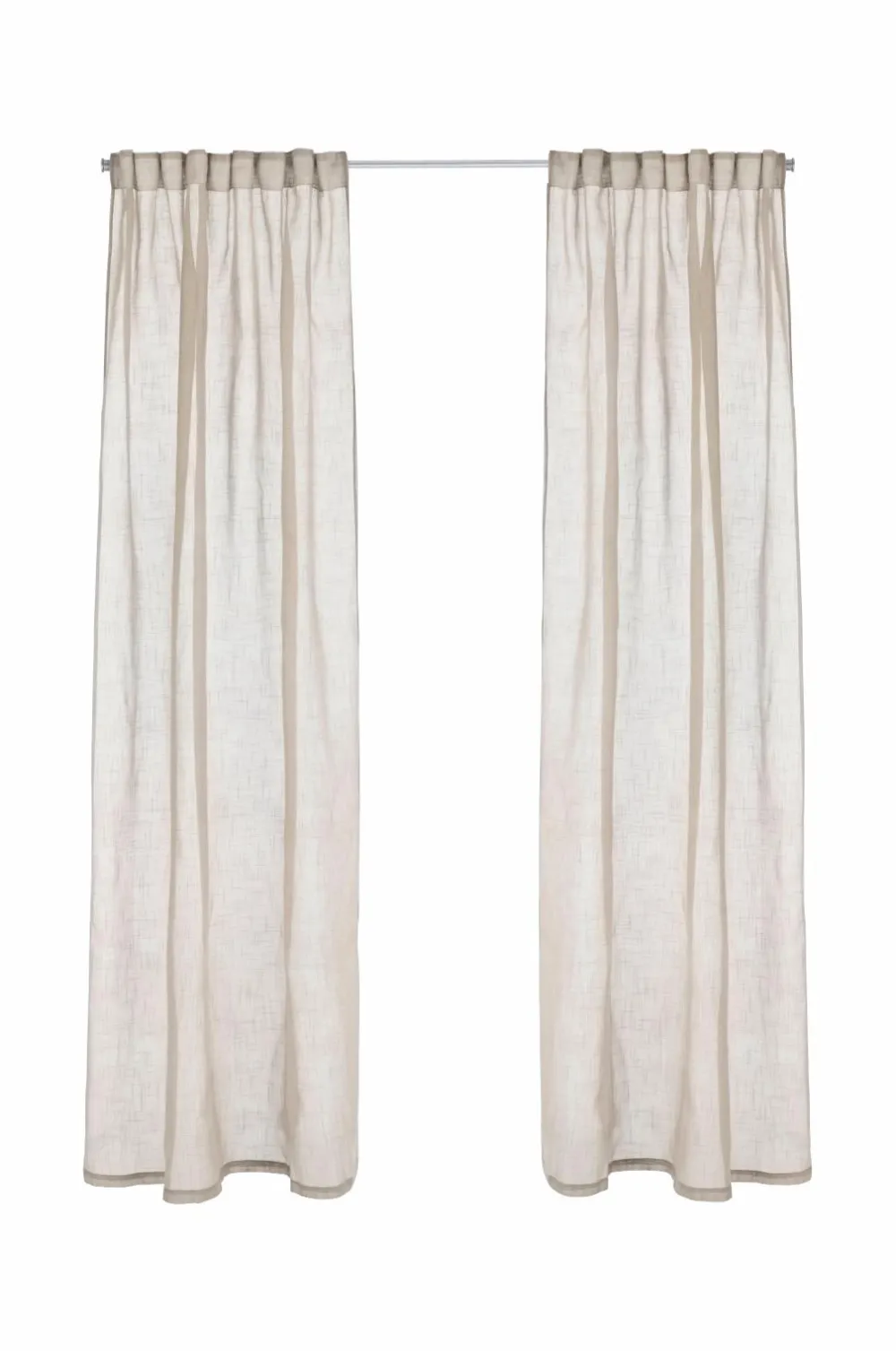 To gardiner med multibånd i luftig kvalitet med let struktur i hørlook. Multibåndet gør, at du enten kan hænge gardinerne direkte på en gardinstang gennem de skjulte stropper eller anvende ringe, nålekroge, rynkebåndskroge eller fingerkroge. Snoren i rynkebåndet gør, at du let kan skabe ensartede, flotte læg. Bredde 134 cm. Tre længder: 220, 250 og 300 cm.