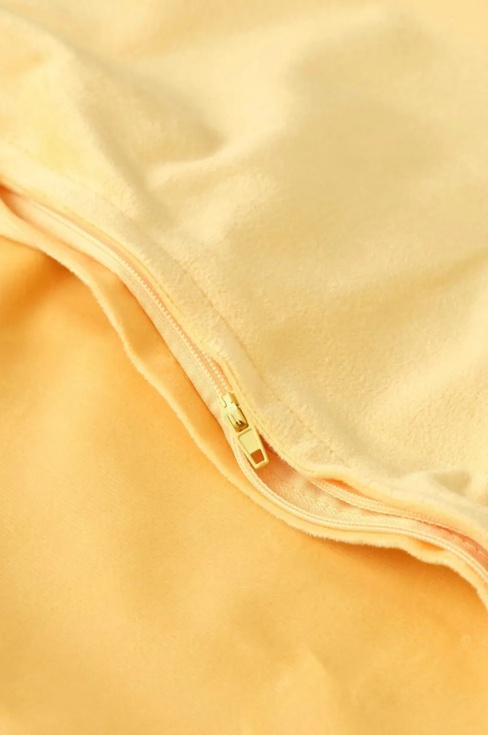 Pudebetræk af velour med fin glans. Af genindvundet polyester. Lynlås i bunden.