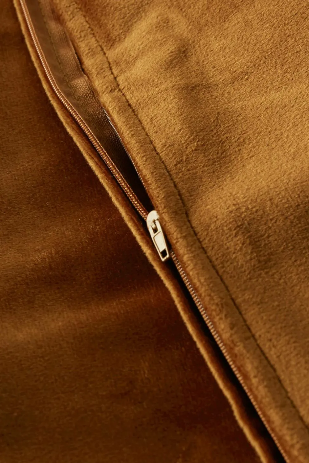 Pudebetræk af velour med fin glans. Af genindvundet polyester. Lynlås i bunden.