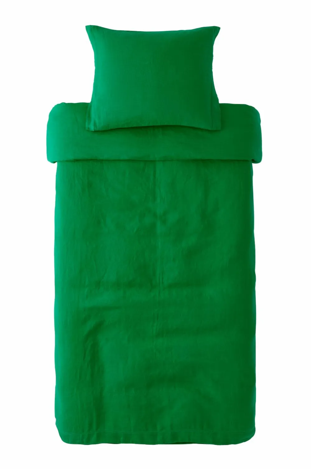 Sengesæt i herlig, vasket kvalitet af fransk hør. Trykknapper i kanten forneden på dynebetrækket. Uden huller i siden til brug ved opredning. Pudebetræk med 5 cm vinge på kortsiderne. Vægt 165 g/m2.