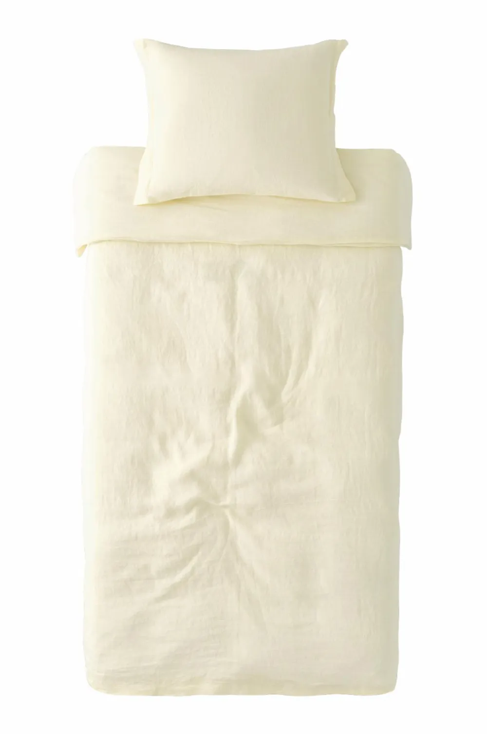 Sengesæt i herlig, vasket kvalitet af fransk hør. Trykknapper i kanten forneden på dynebetrækket. Uden huller i siden til brug ved opredning. Pudebetræk med 5 cm vinge på kortsiderne. Vægt 165 g/m2.
