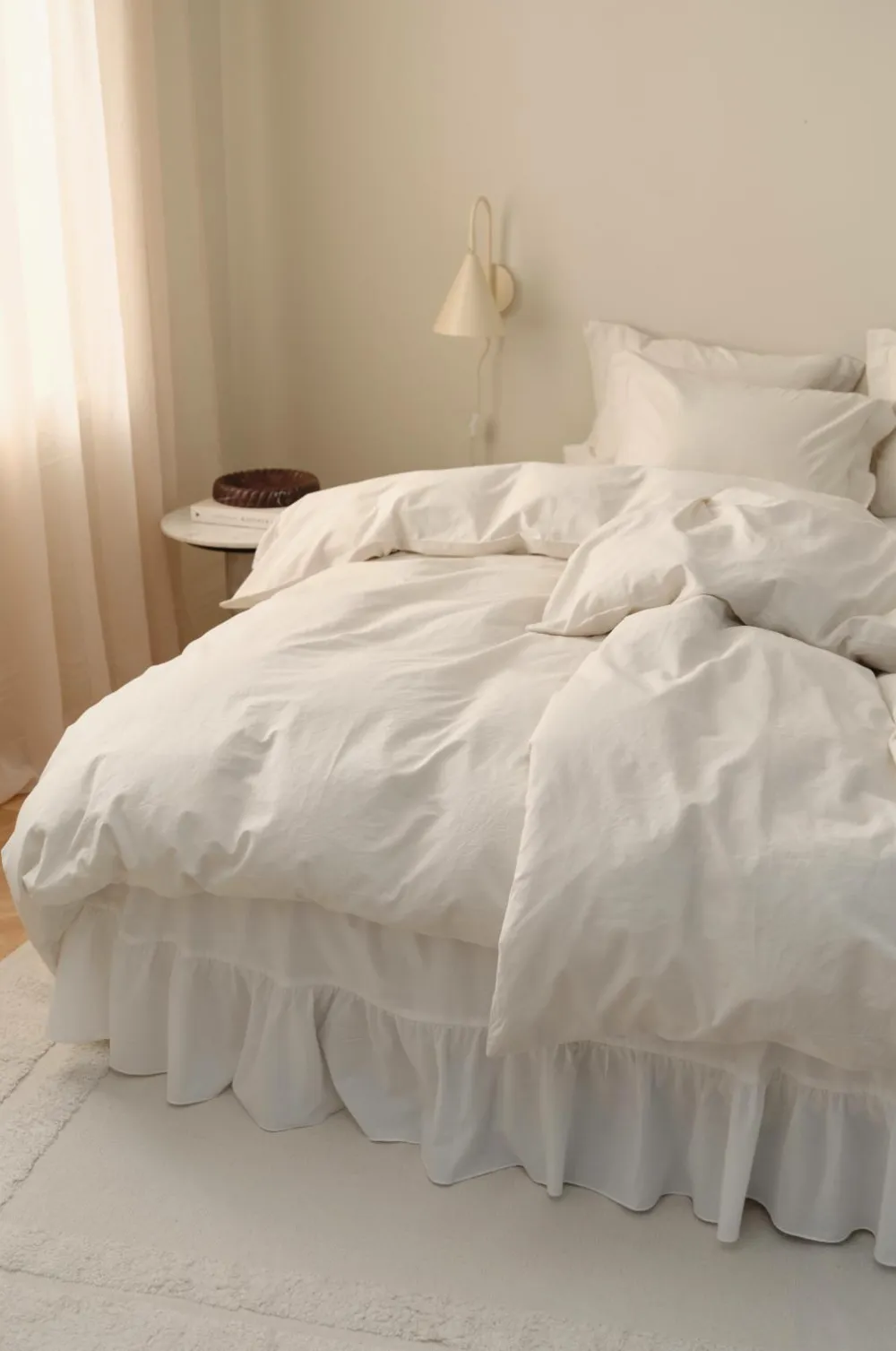 2-delt sæt: 1 dynebetræk 150×200 cm og 1 pudebetræk 50×60 cm + 5 cm vinge på kortsiderne.