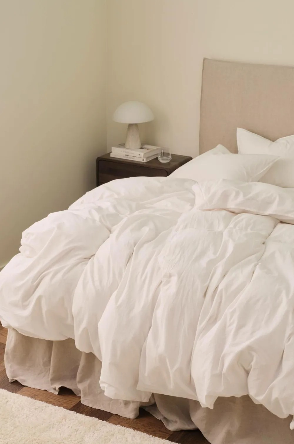 Sengesæt i vintagevasket økologisk bomuld. Trådtæthed 144 TC. Dobbelte jeanssømme hele vejen rundt. Trykknapper i kanten forneden på dynebetrækket. Ingen huller i siden til brug ved opredning. Leveres i stofpose i samme kvalitet med løbegang. Dynebetræk 150×210 cm og pudebetræk 50×60 cm.
