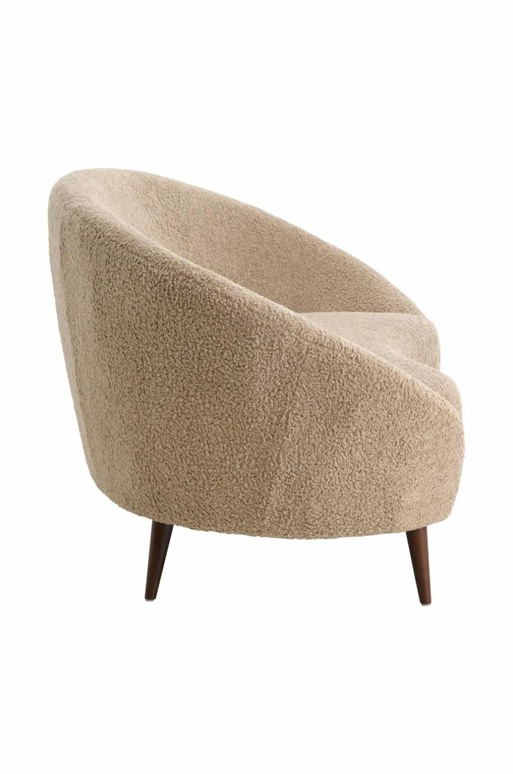 3-pers. sofa med moderne, organisk form. Stel i massiv fyr og plywood. Ben i bøgetræ. Betræk i blød imiteret fåreskind af polyester. Betrækket er ikke aftageligt. Skumfyld og nozagfjedre. Frihøjde under møbel 17 cm. Samlet.