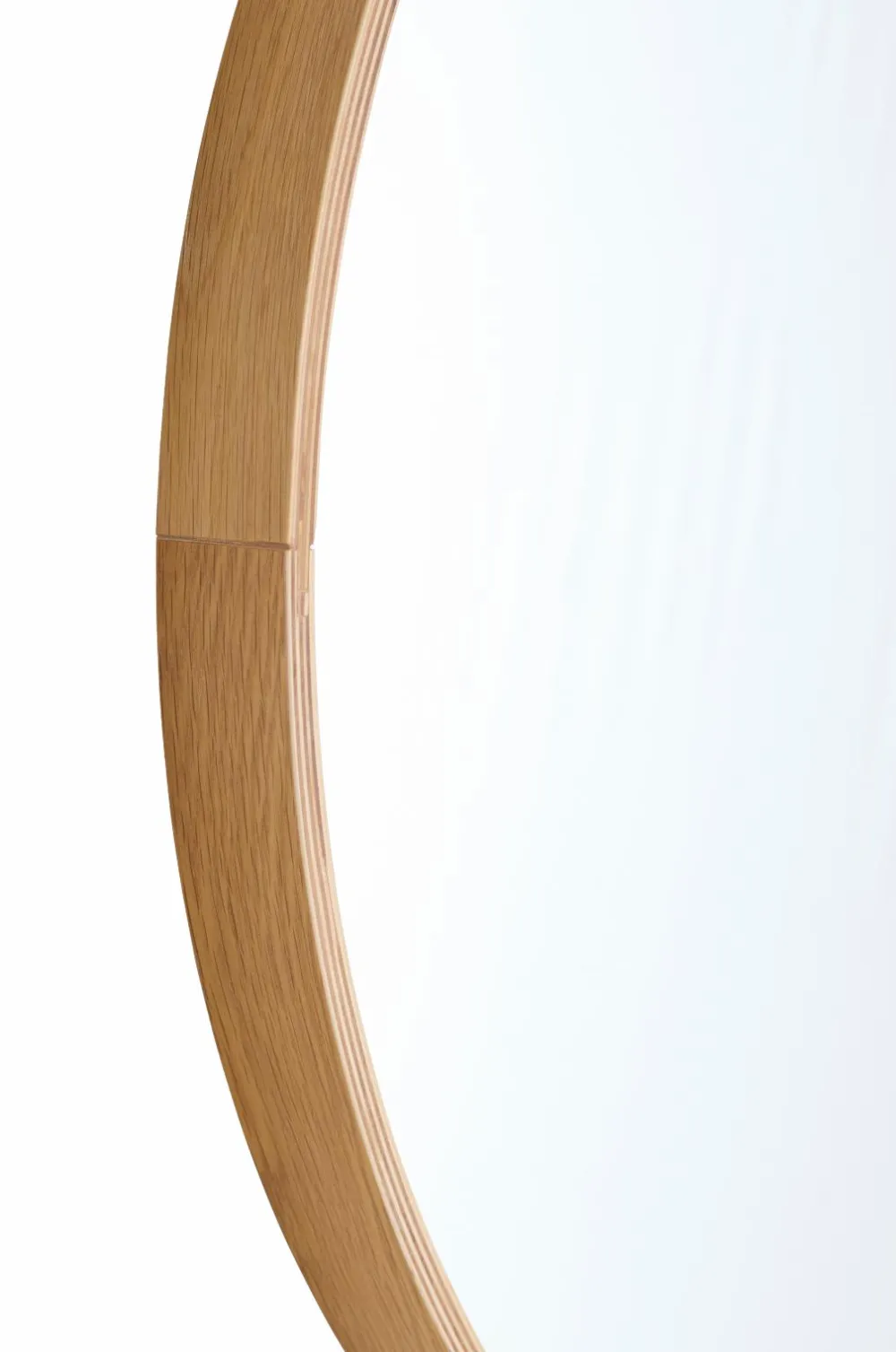 • Rundt spejl med ramme i egetræsfinér krydsfiner