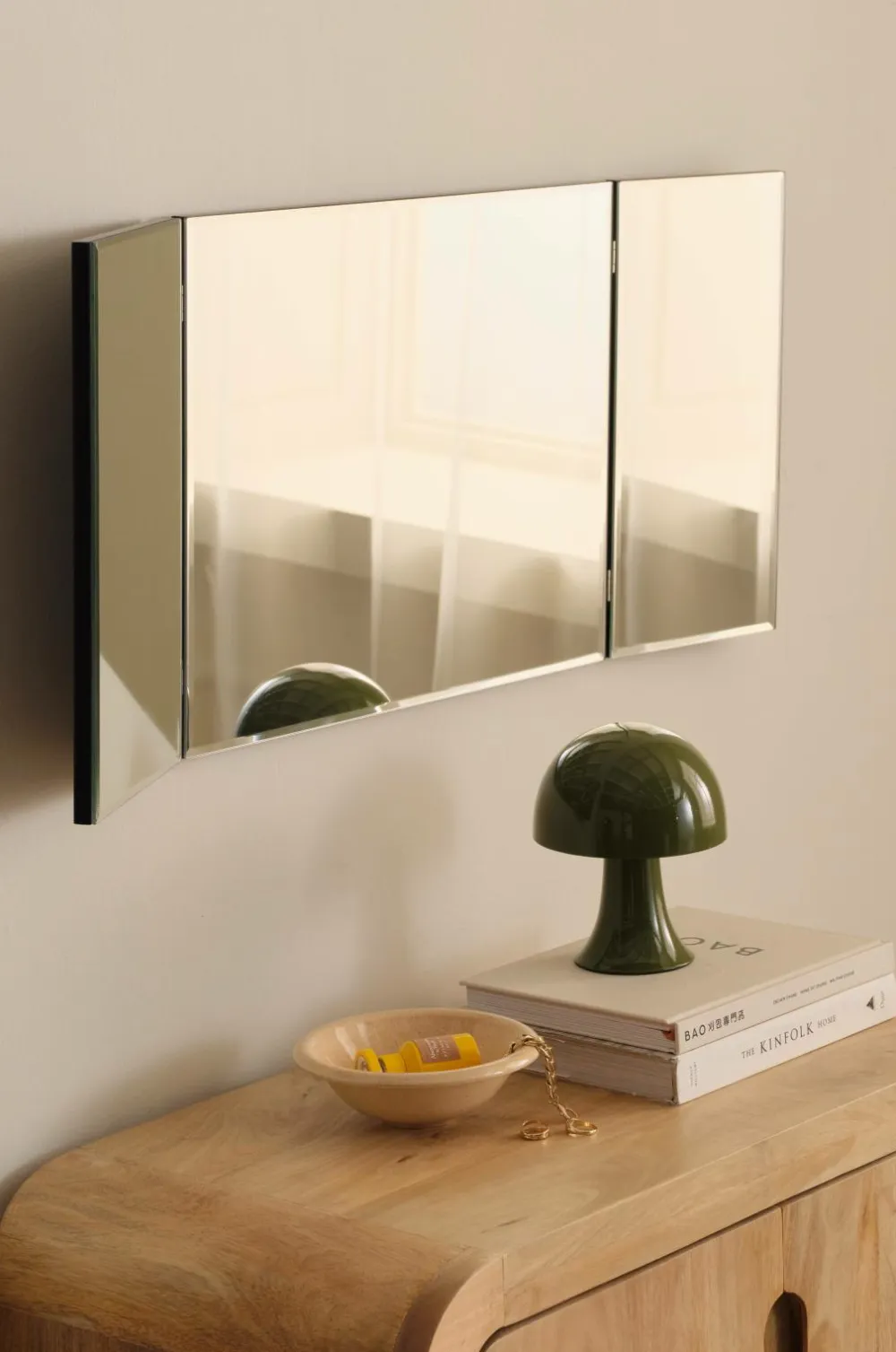• Vægmonteret spejl med to sammenfoldelige vinger