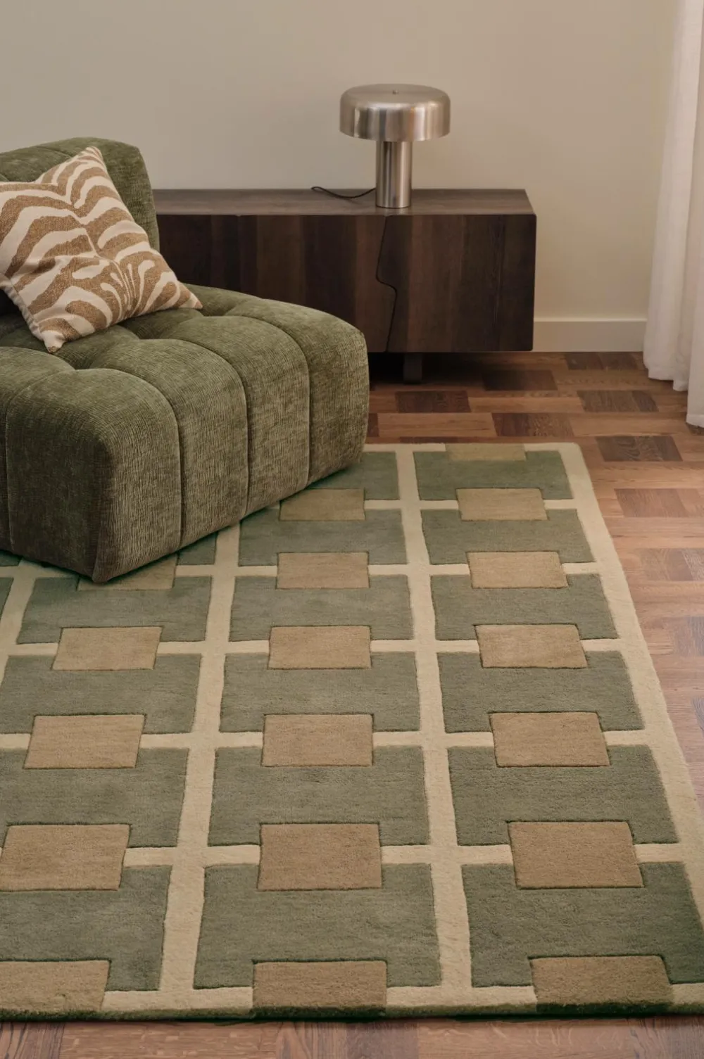• Håndtuftet uldgulvtæppe med udskåret mønster