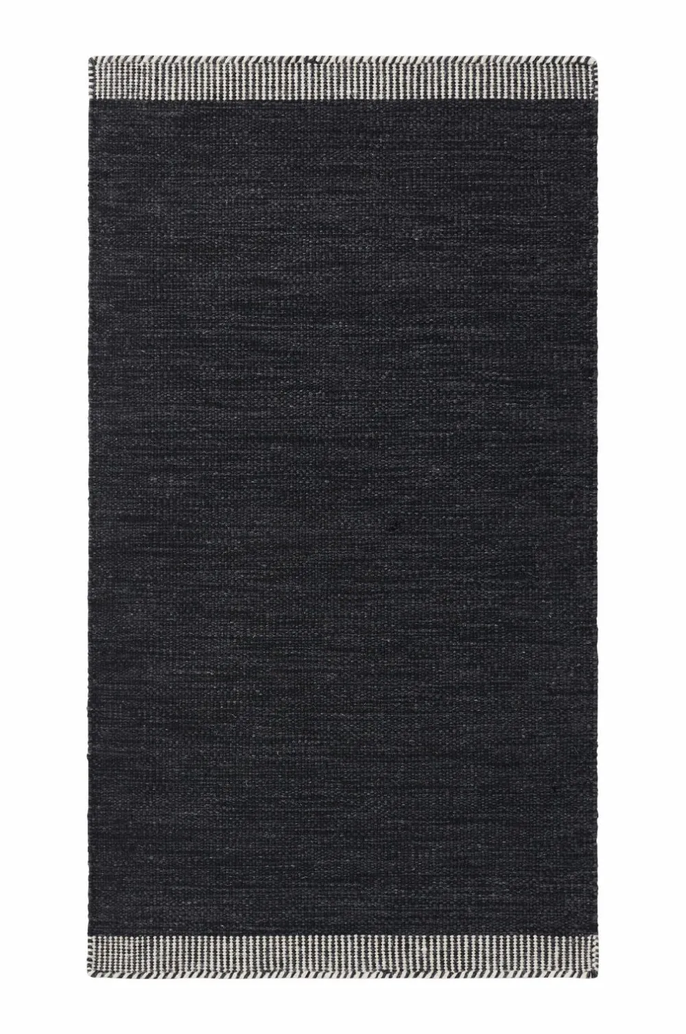 Håndvævet uldtæppe i meleret look. Stribet kant i enderne.