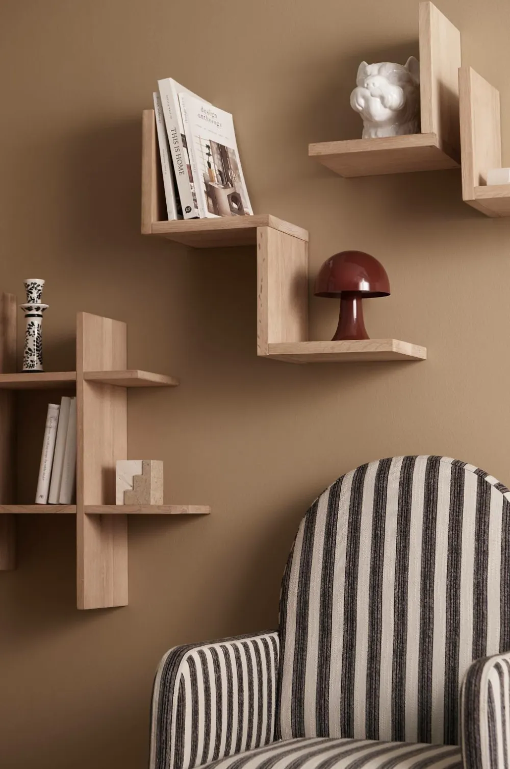 • Dekorativ Væghylde i massivt egetræ med sæbebehandlet afslutning