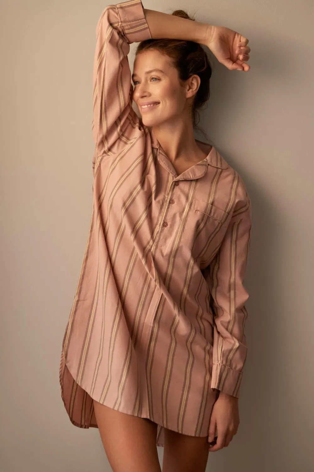 Ellos Homewear>Home Natskjorte Juliette Stripe Rosa /Brun