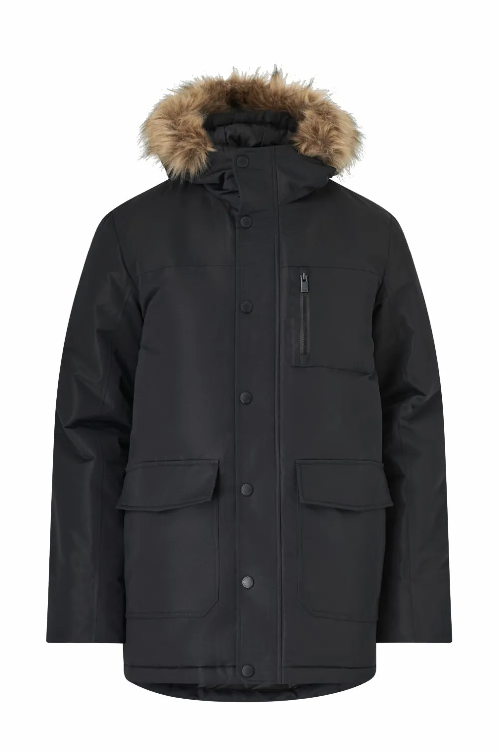 • Varmt foret parka med hætte og aftagelig kunstig pels