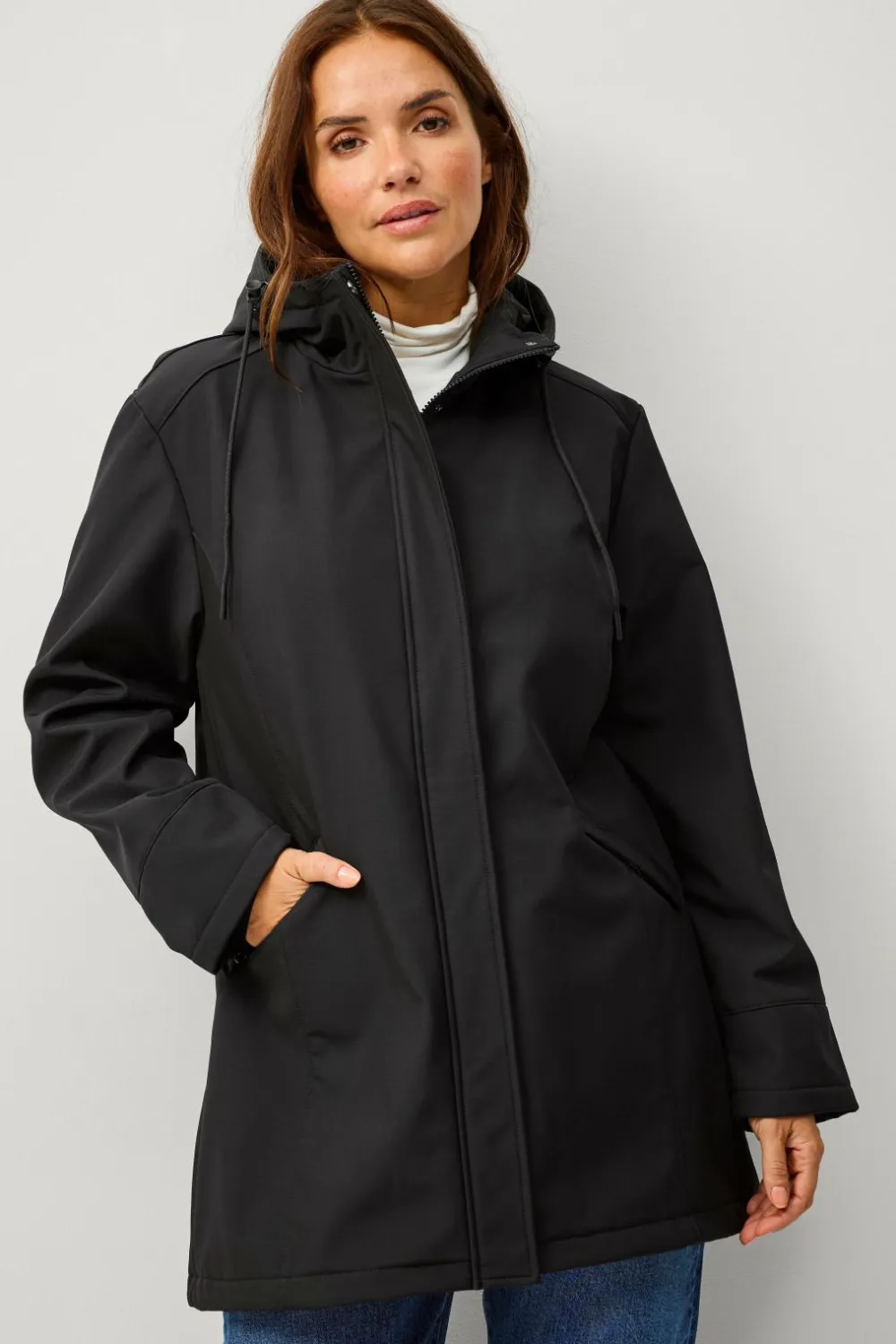 • Jakke i softshell med blødt fleece for