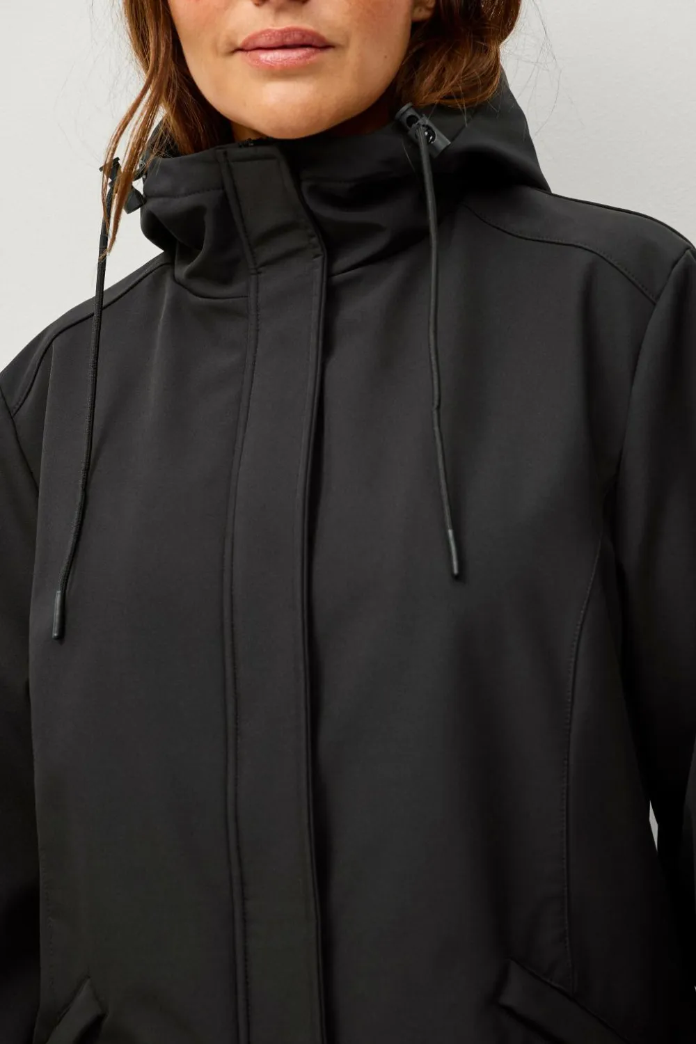 • Hætte med træksnørre