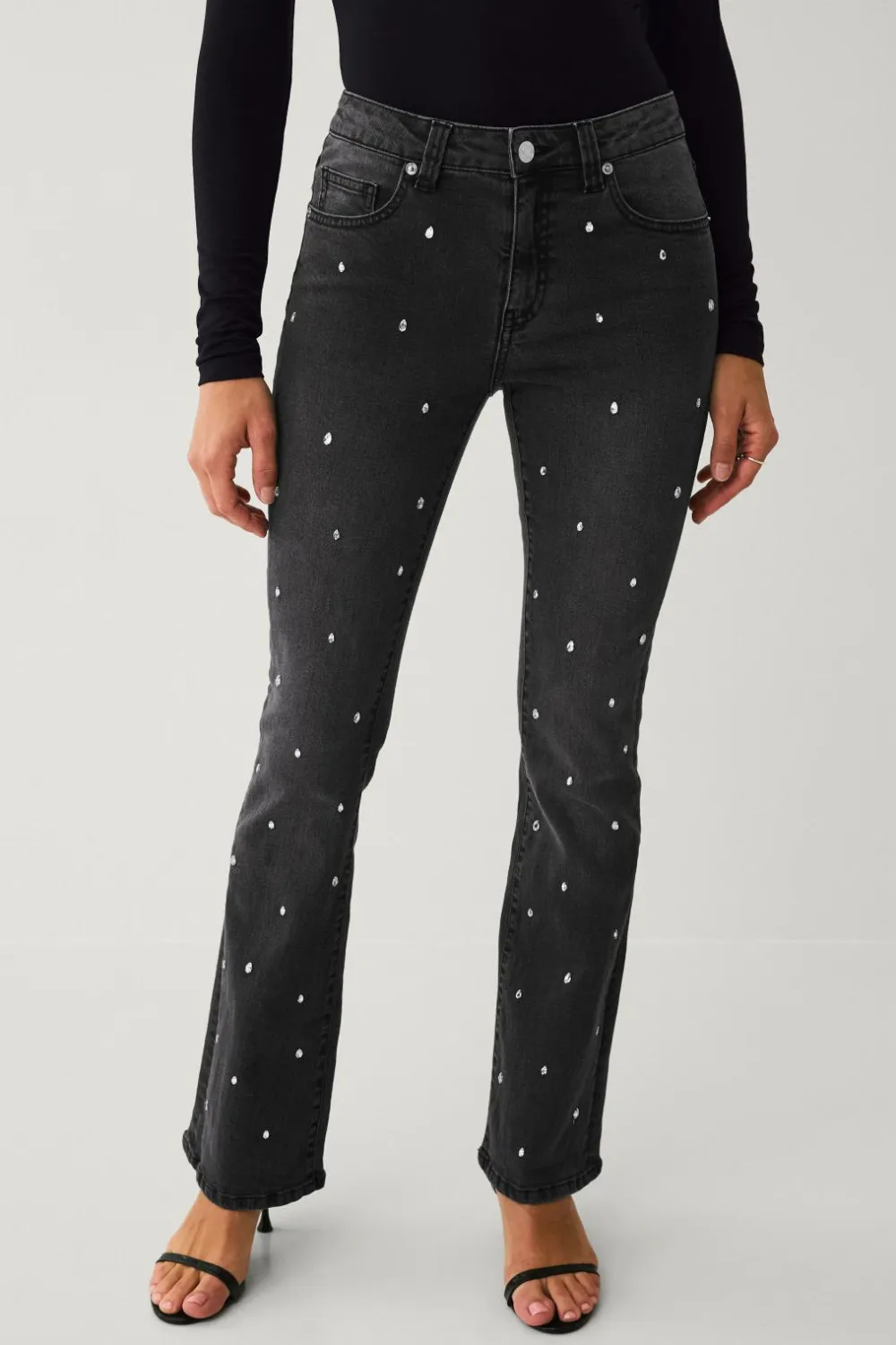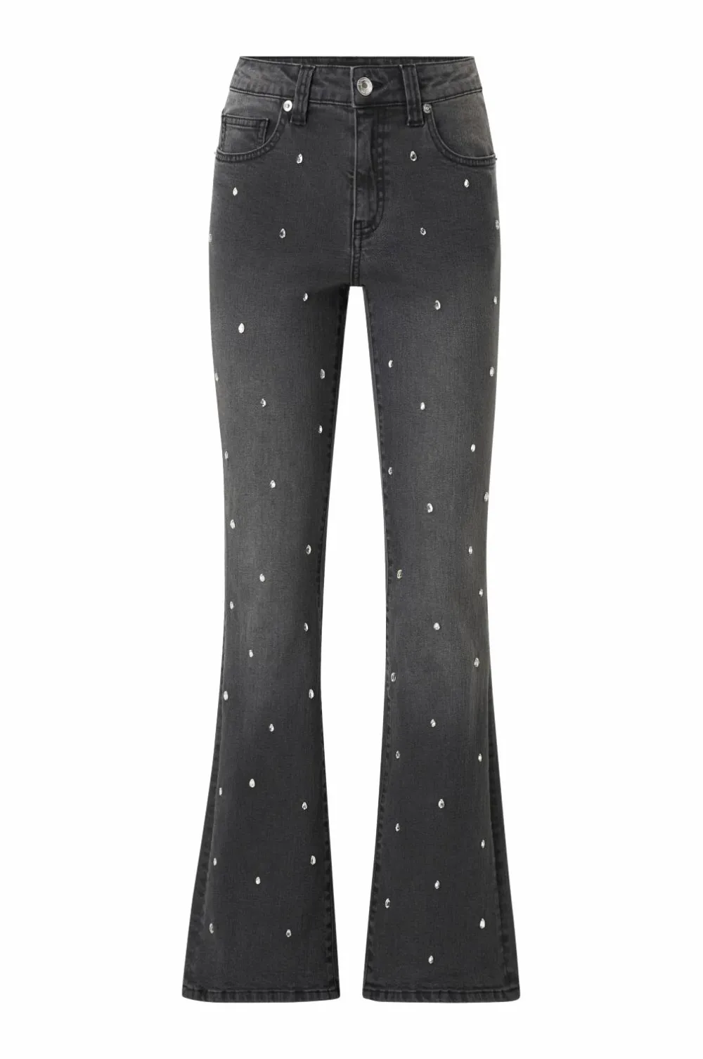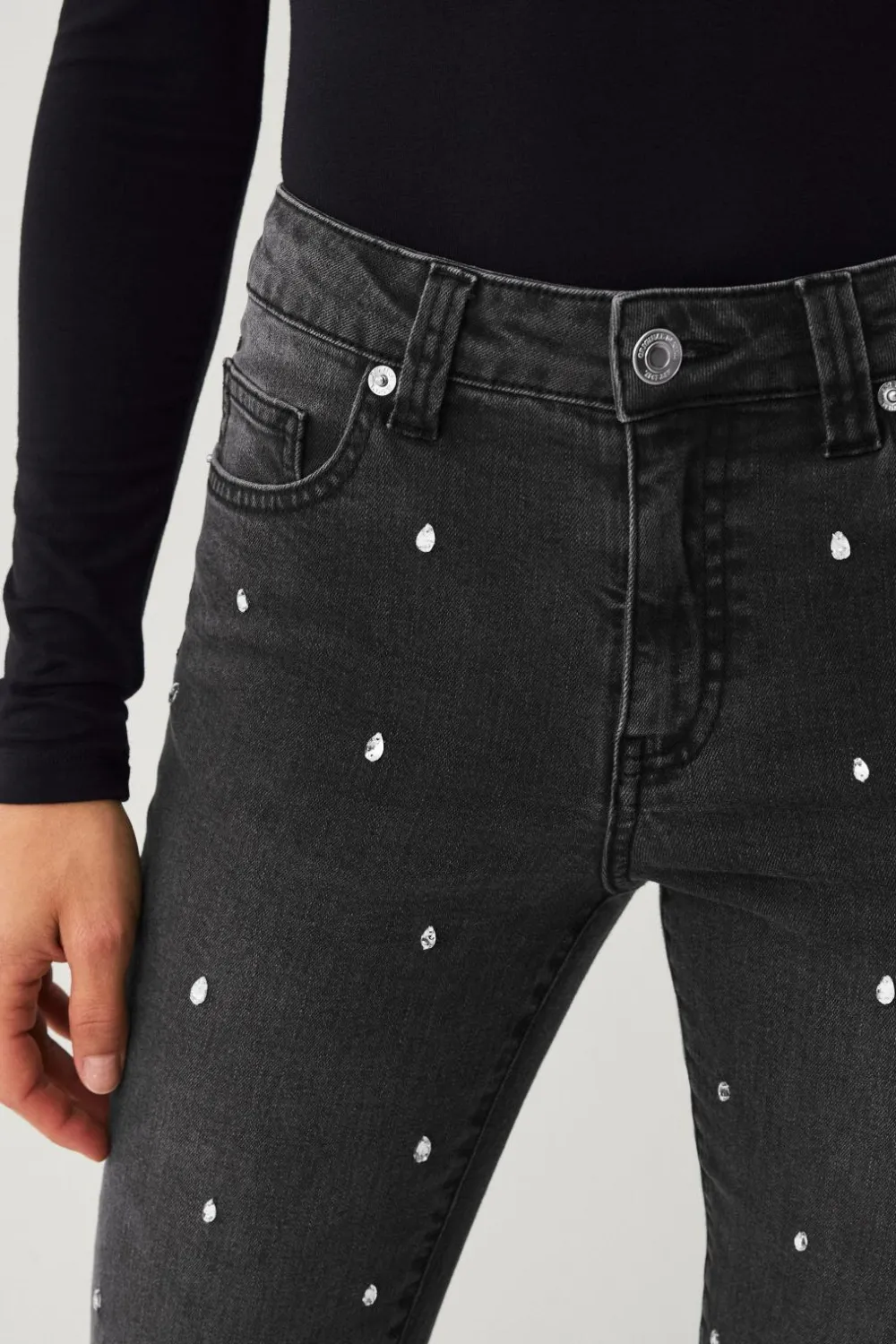 • Jeans i strækdenim med påsyede rhinstene foran