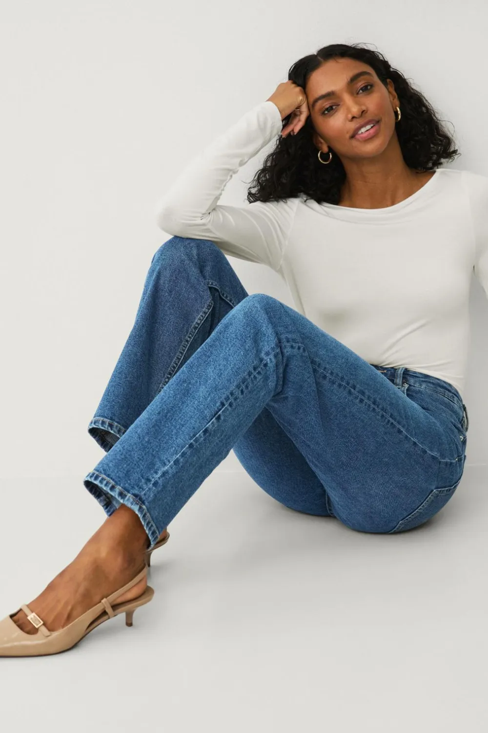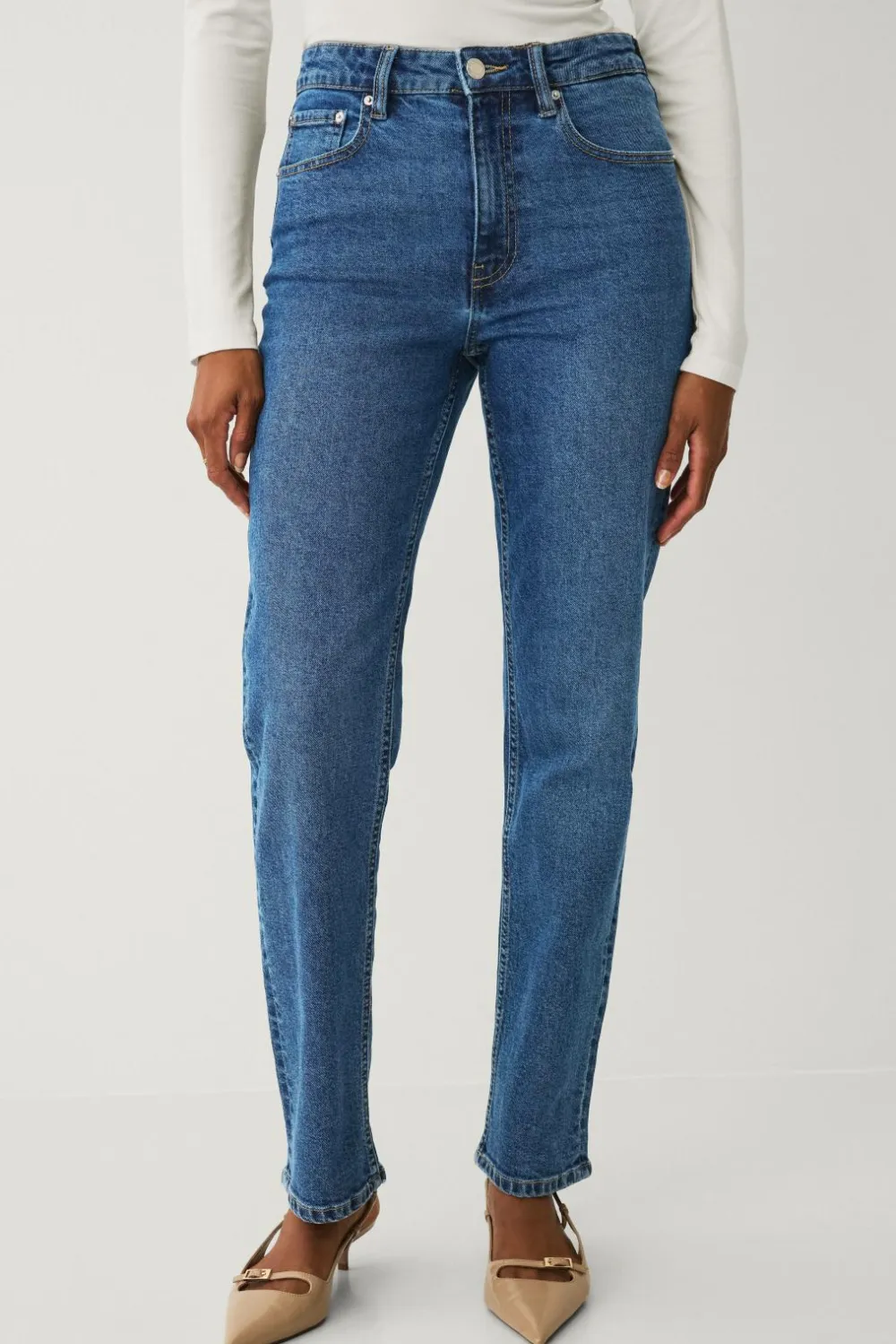 • Jeans i bomuld med lige ben og høj talje
