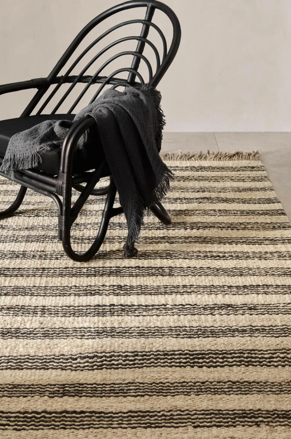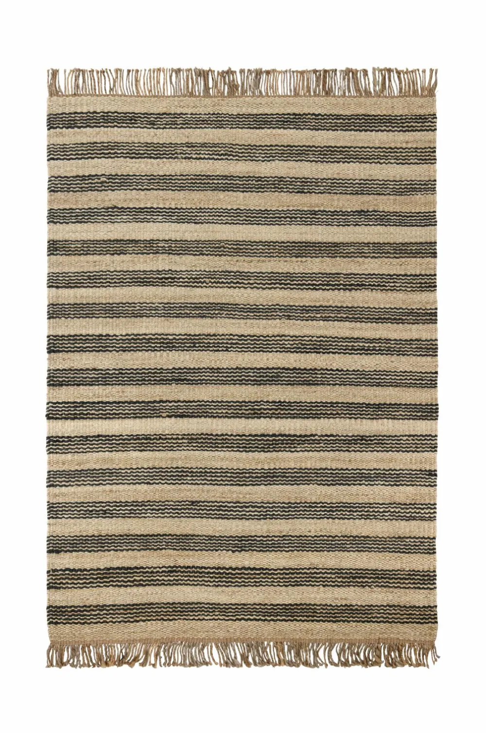 Vævet tæppe i 100% jute med frynser på kortsiderne. Trend af bomuld.