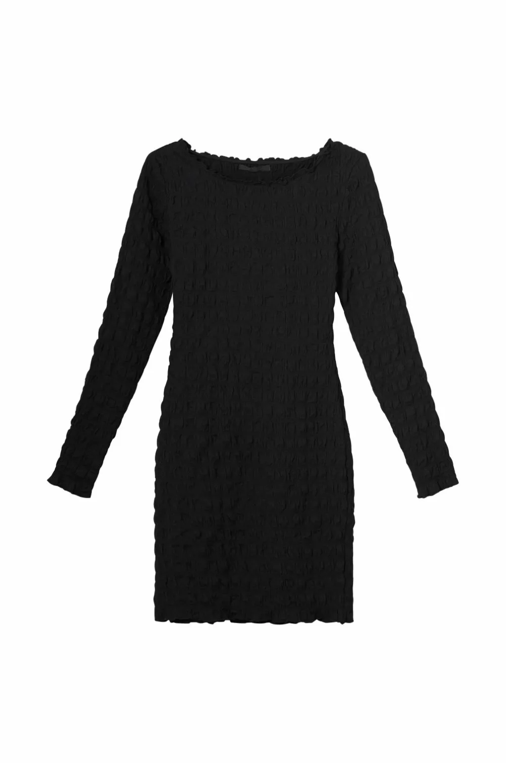 • Bølgede kanter i halsen, ved manchetterne og nederst