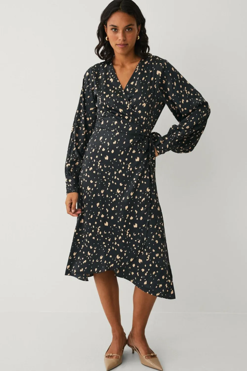 • Kjole med slå-om design i satin