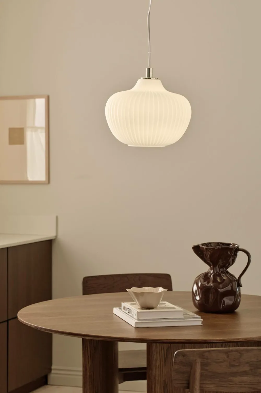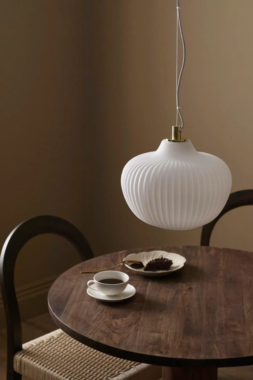 • Loftslampe i mat, opalhvid glas med ribbet struktur