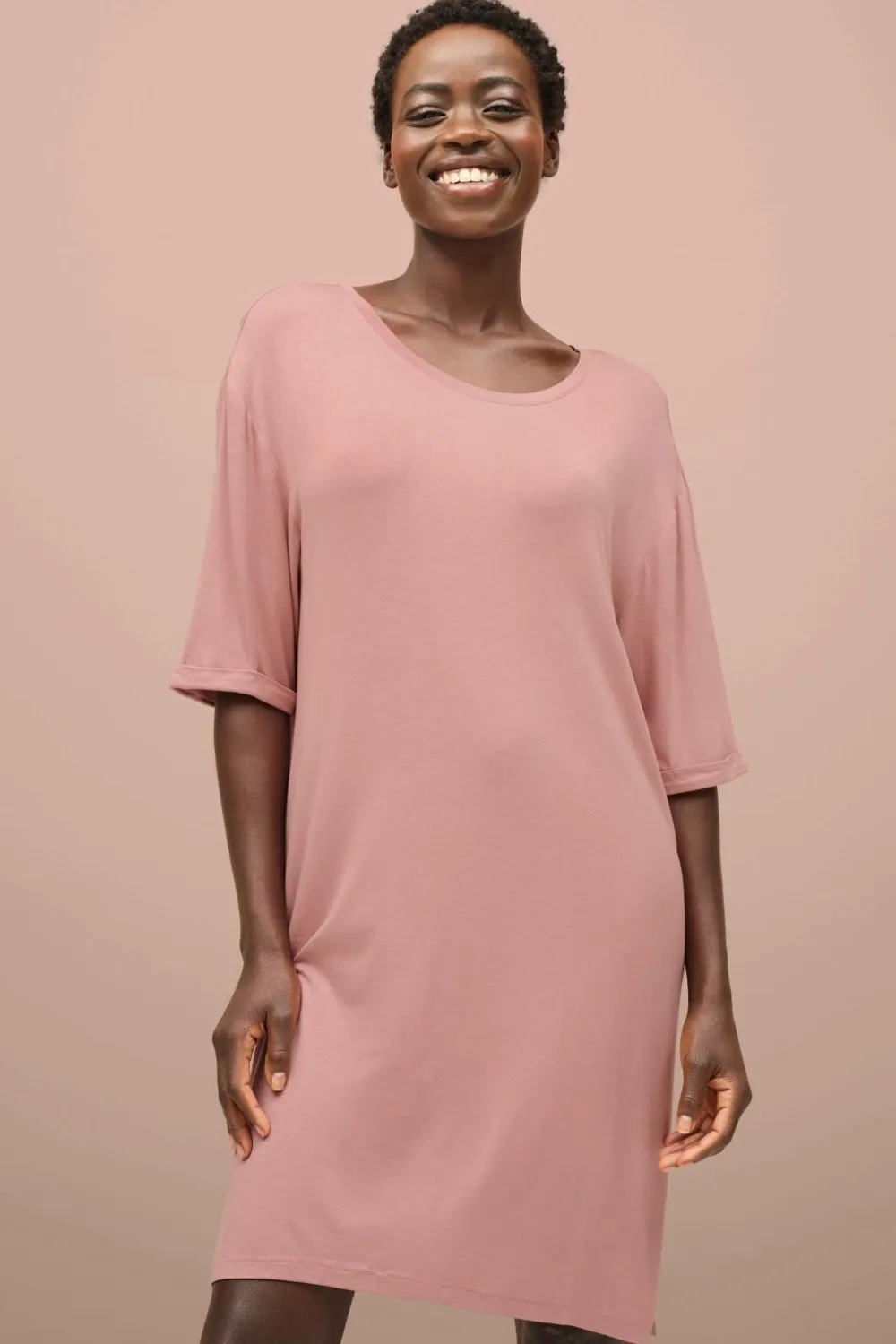 • Pyjamas t-shirt i blød jersey med lang, oversized, lige model