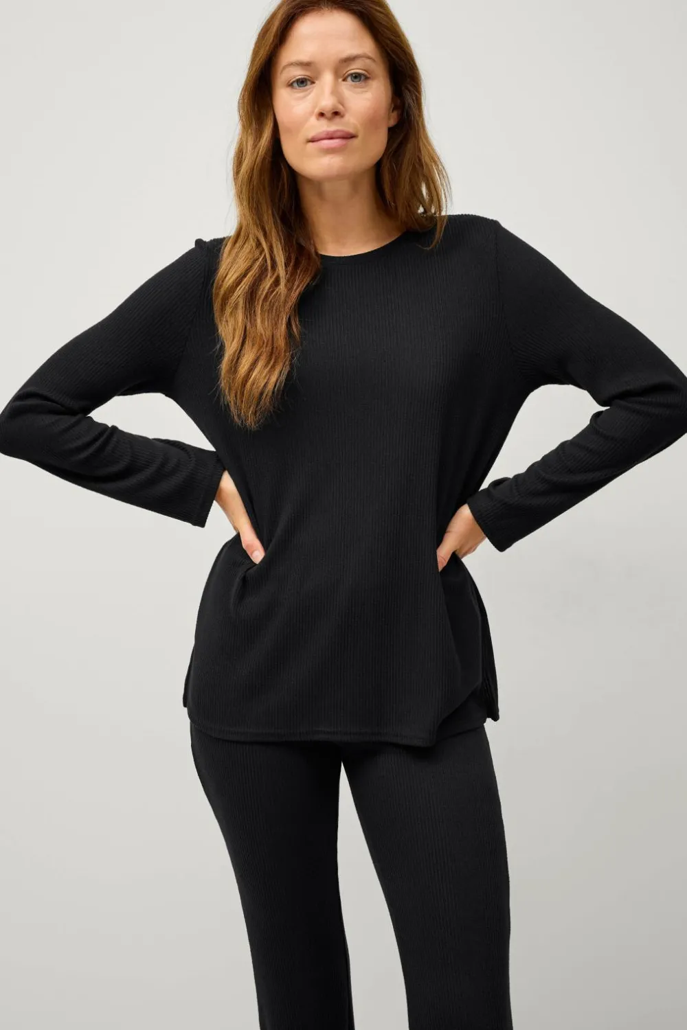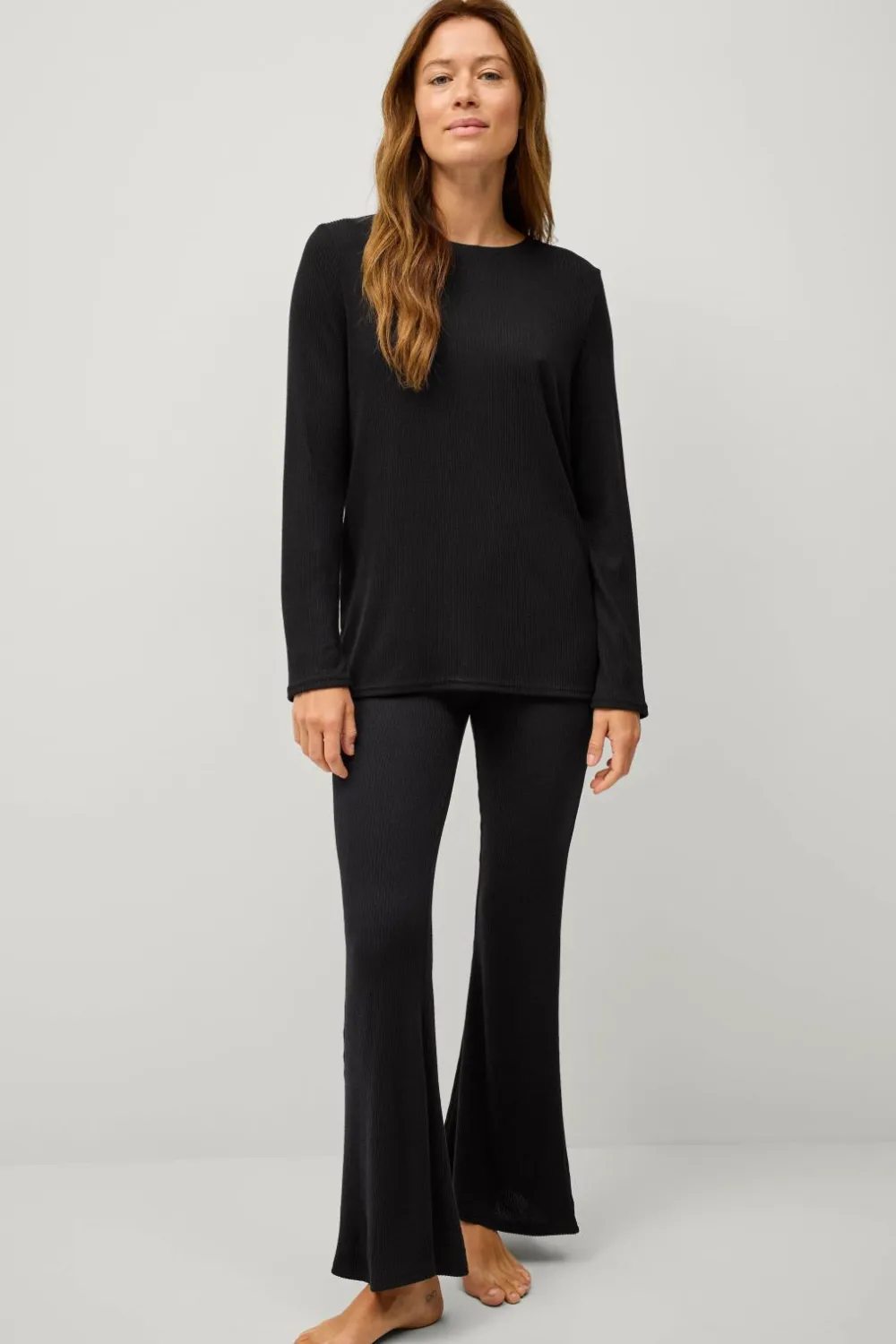 • Ribbet top i blød jersey