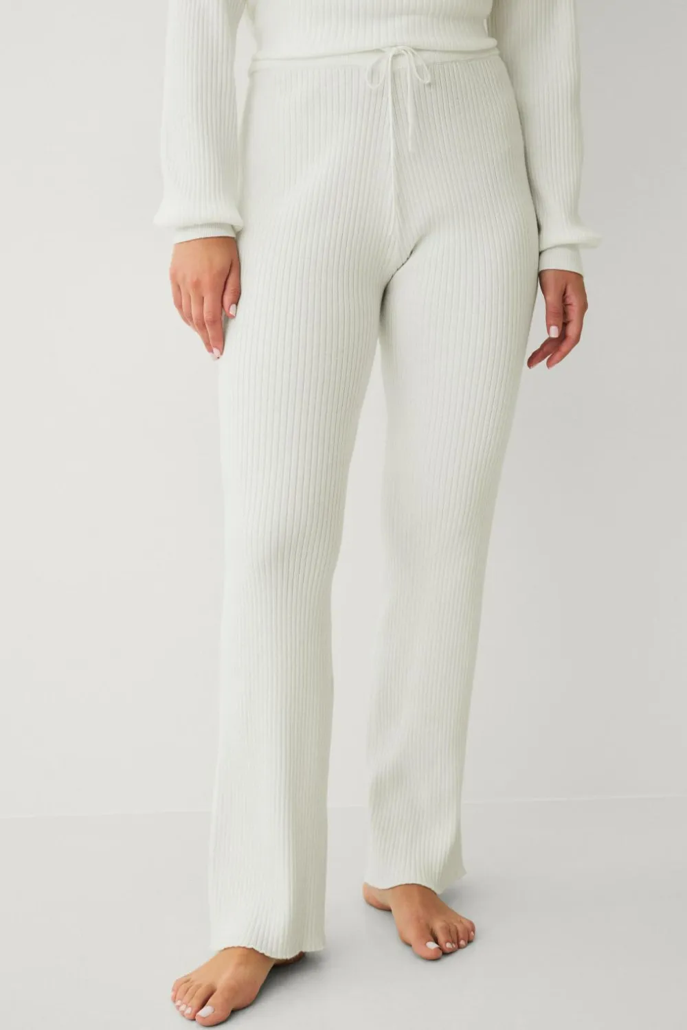 • Bløde, ribstrikkede bukser med lige ben