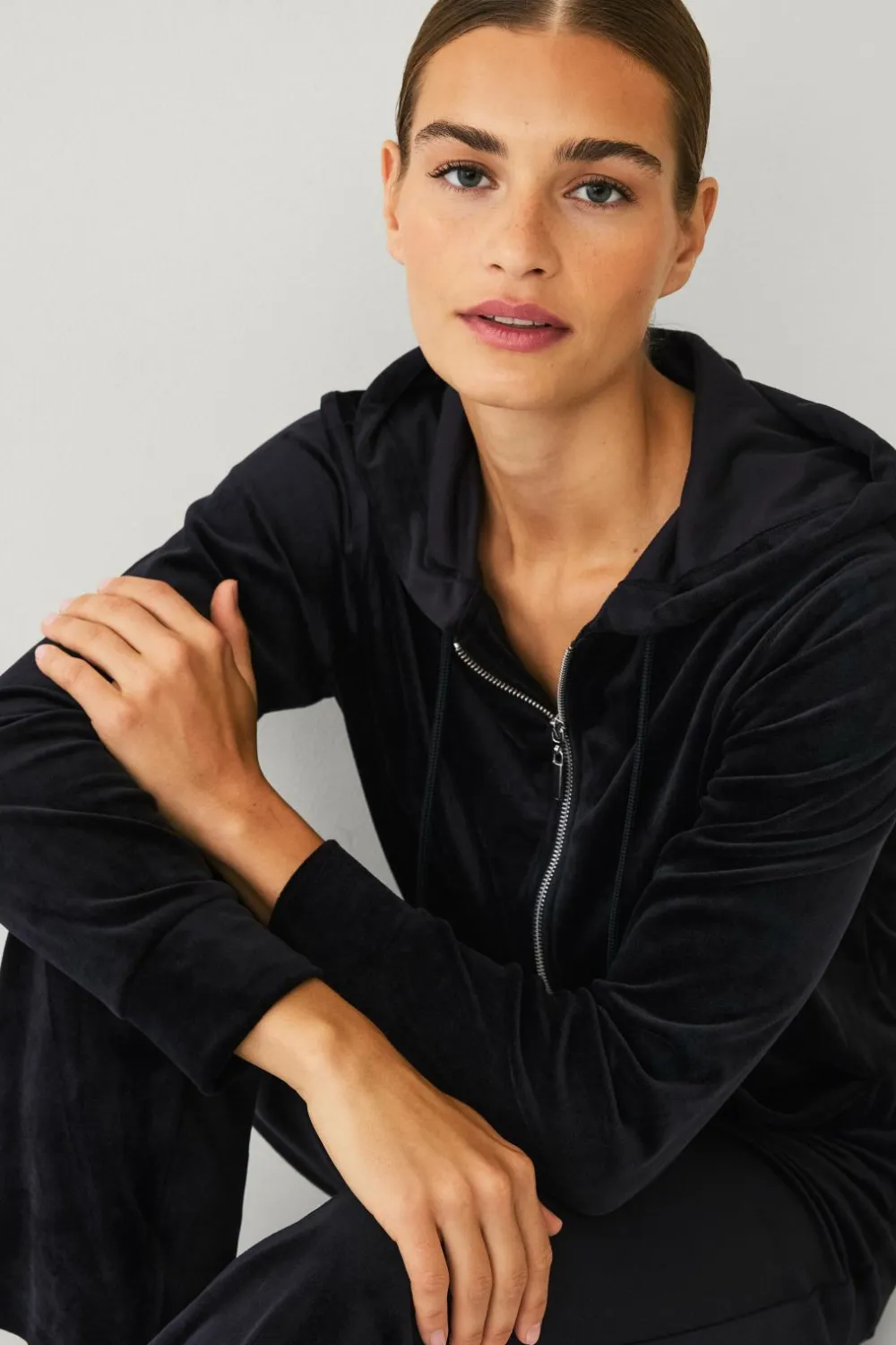 • Hættetrøje i velour med snører