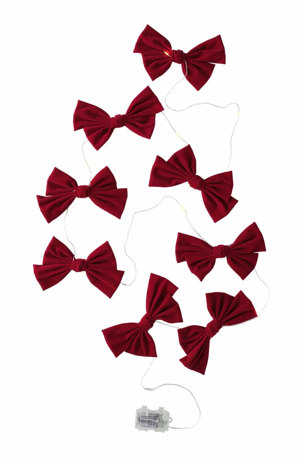 • Otte bånd i fløjl med LED-belysning