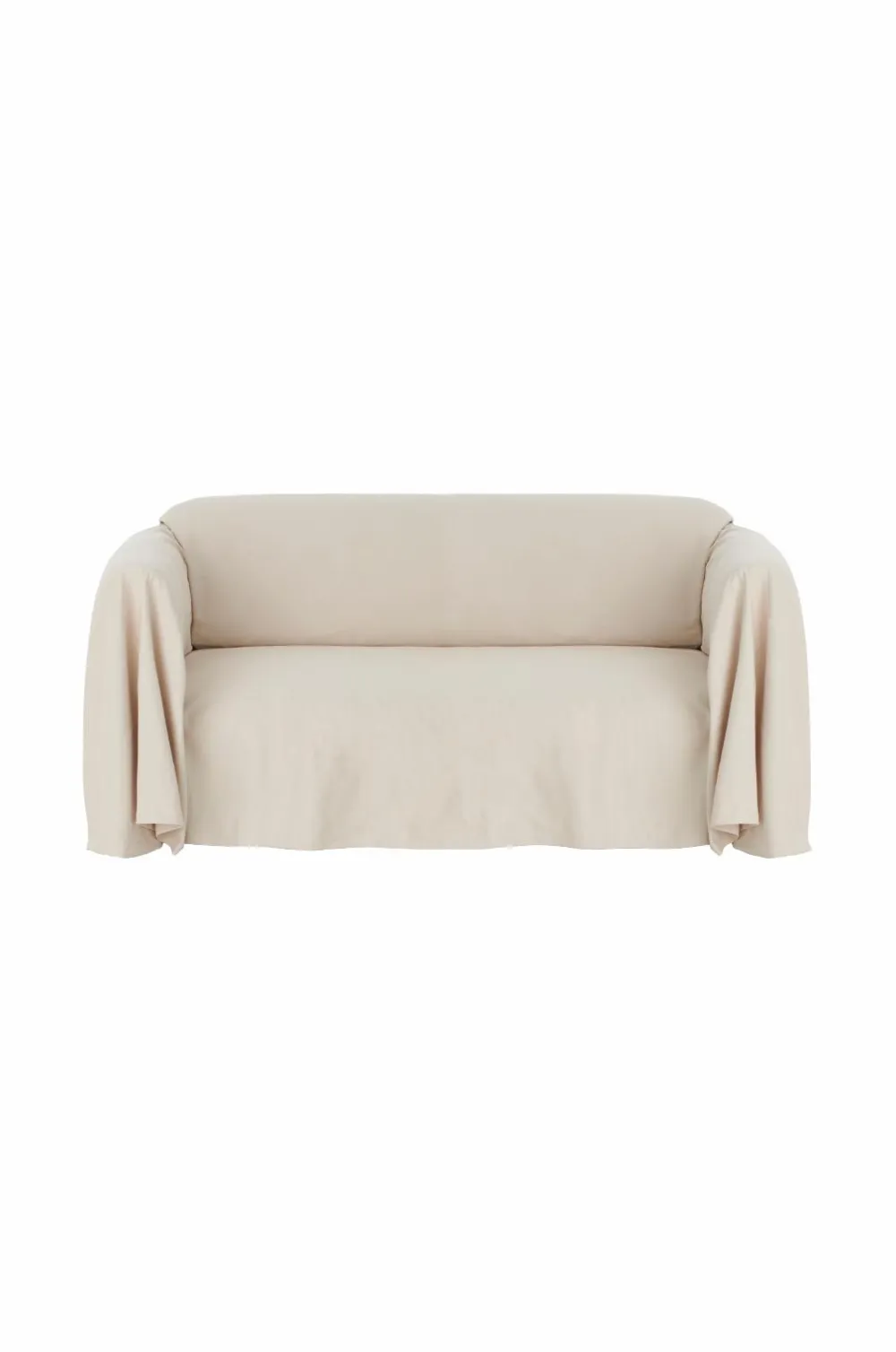 Stofbetræk i kraftig, blødvasket kvalitet. Et helt stykke stof, der draperes over sofaen. Størrelse 350×260 cm.