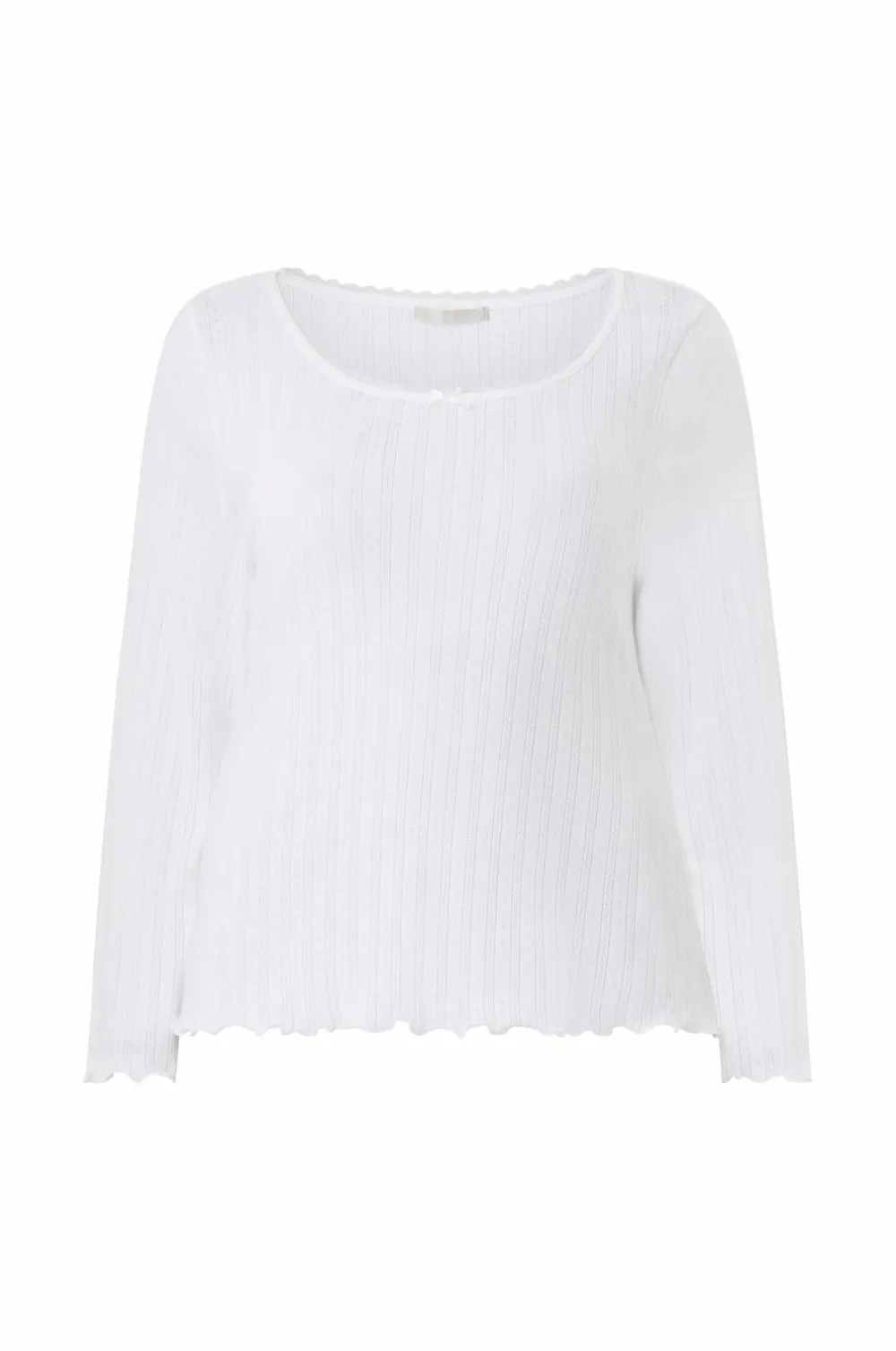 • Rund halsudskæring med dekorativ blondekant og en lille sløjfe
