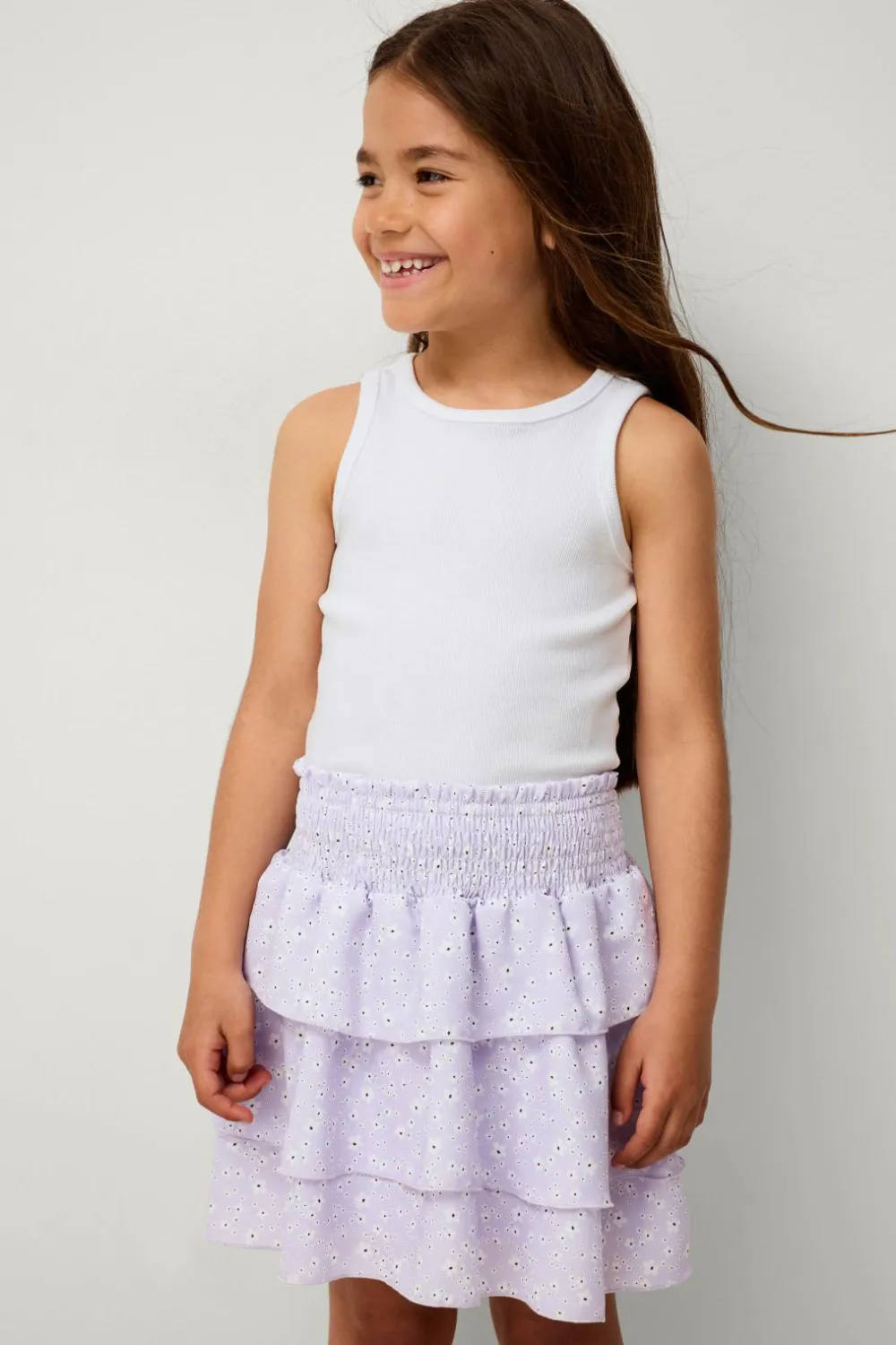 • Nederdel i chiffon med volanter