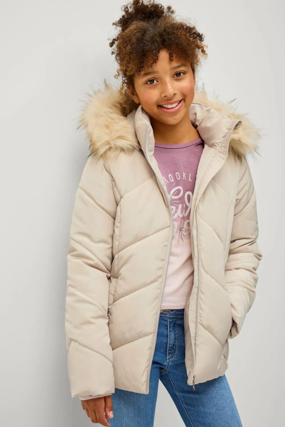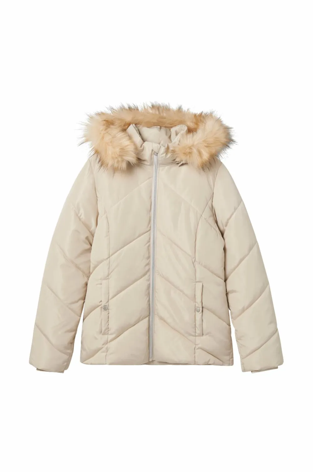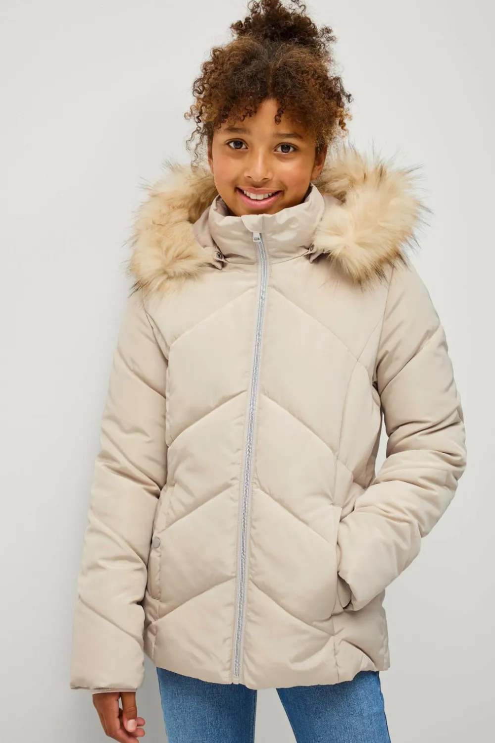 • Aftagelig hætte med aftagelig kunstpelskant