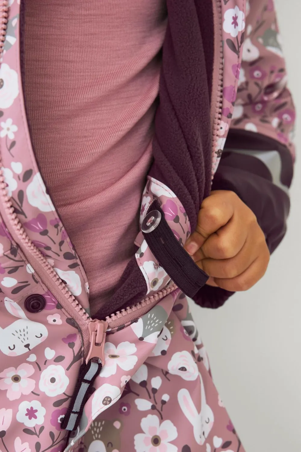 Vandtæt, let polstret regnsæt med varmt fleecefor.