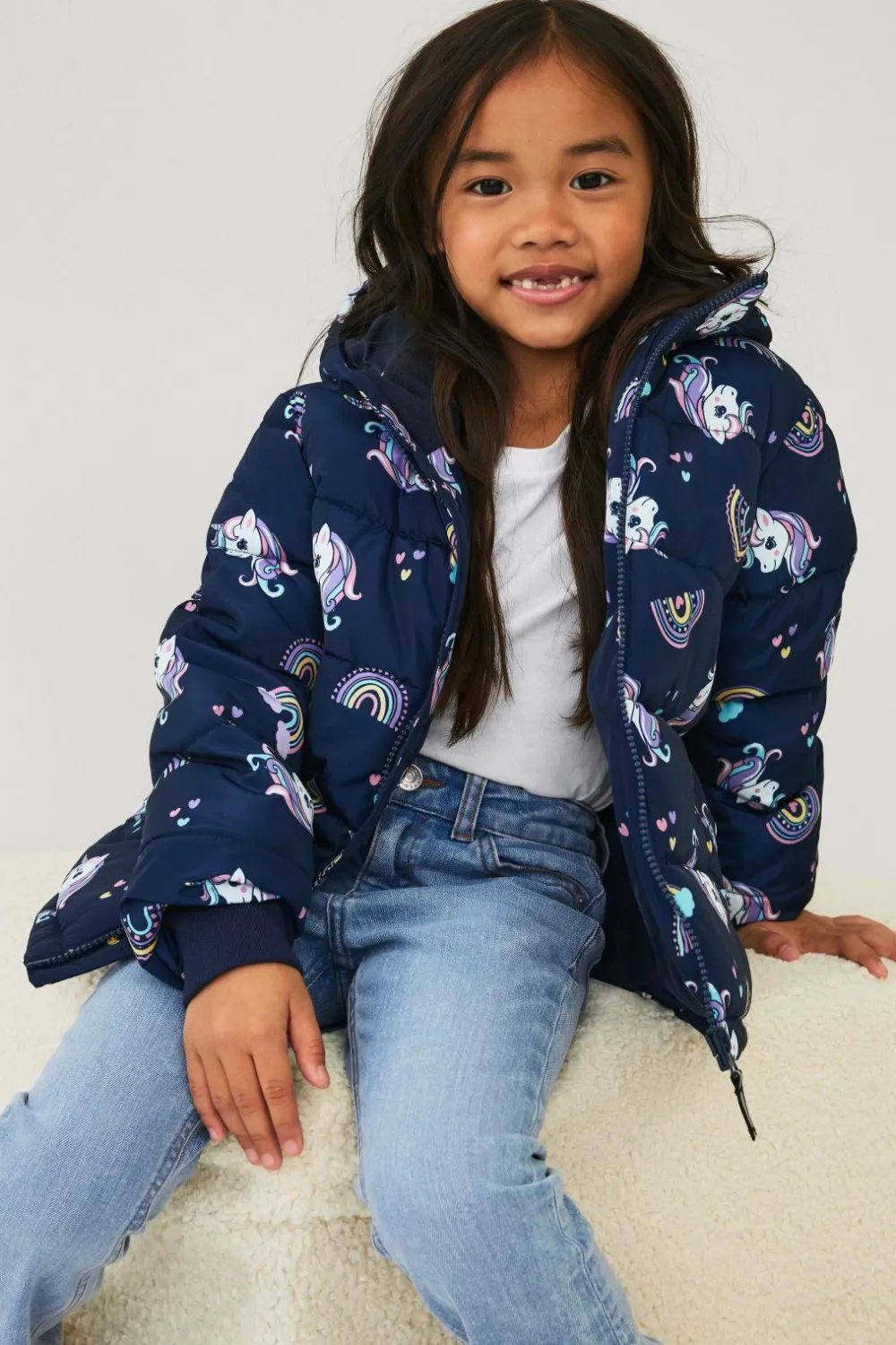 • Pufferjakke med printet mønster