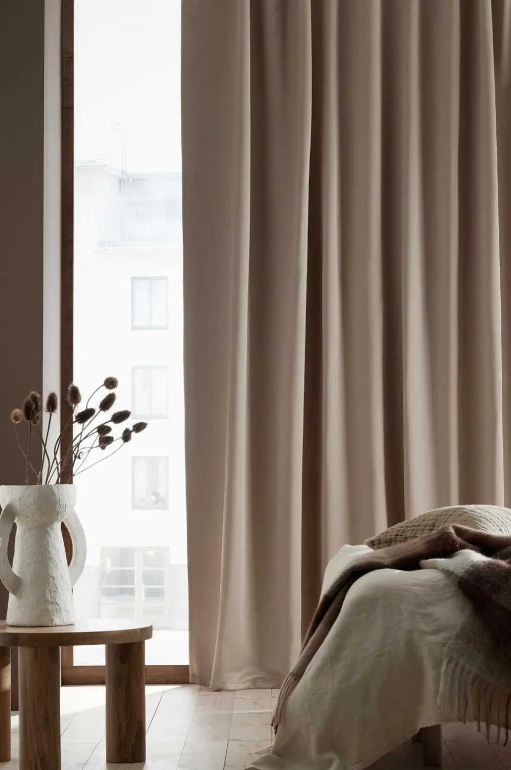 Mørklægningsgardin i twill med fin glans. Et vævet mellemlag med indvævede sorte tråde gør, at gardinet lukker lyset ude. Gardinet har multibånd, som gør at du kan trække det direkte på en gardinstang eller bruge ringe og nålkroge (ikke fingerkroge). Snoren i rynkebåndet gør, at du let kan skabe ensartede, flotte læg. Sælges i 1-pak.