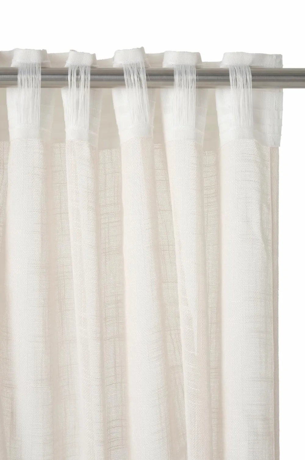 • Multibåndet gør, at du enten kan hænge gardinerne direkte på en gardinstang gennem de skjulte stropper eller anvende ringe, nålekroge eller fingerkroge. Snoren i rynkebåndet gør, at du let kan skabe ensartede, flotte læg.
