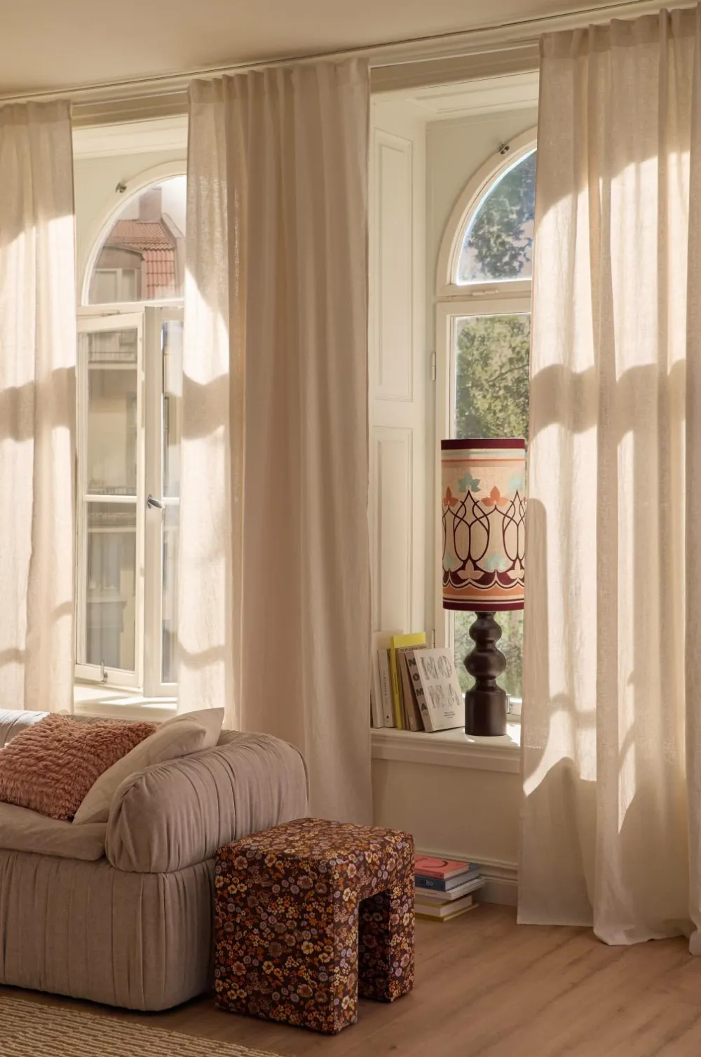 • To ensfarvede Multibåndsgardiner i hørblanding