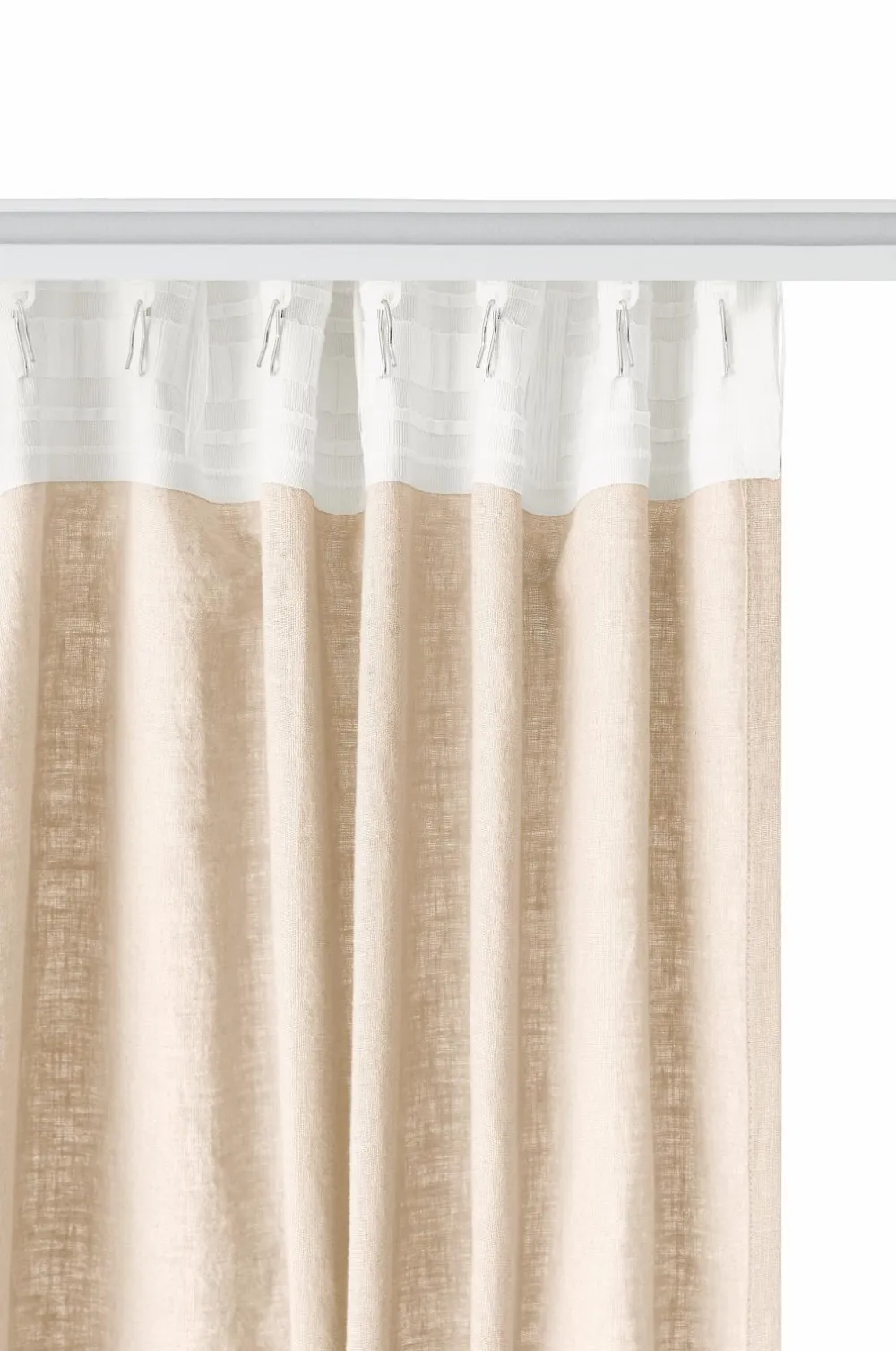 • Multibåndet gør, at du enten kan hænge gardinerne direkte på en gardinstang gennem de skjulte stropper eller anvende ringe, nålekroge eller fingerkroge. Snoren i rynkebåndet gør, at du let kan skabe ensartede, flotte læg.