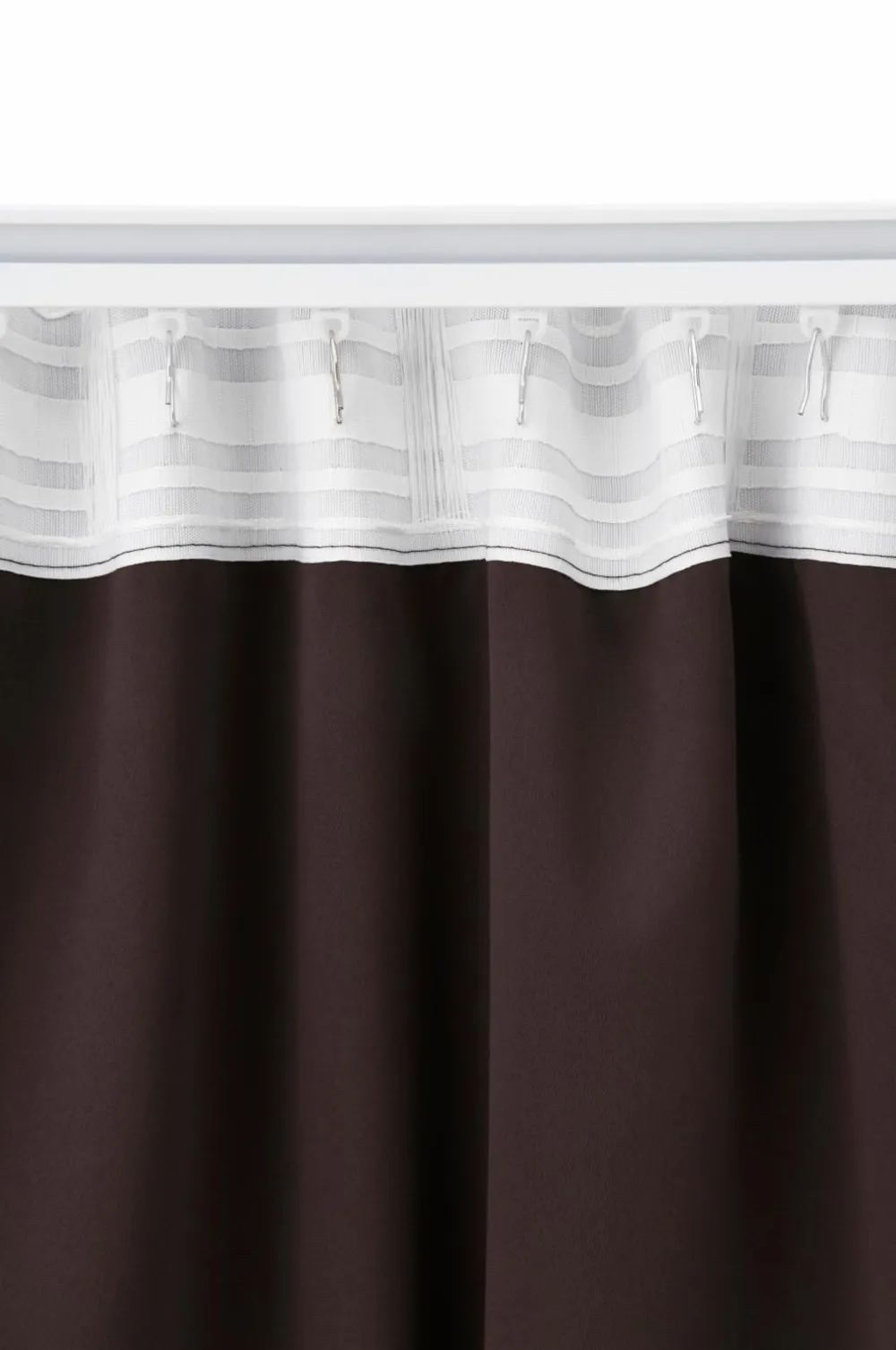 Ekstra bred gardinlængde med multibånd med indvævede sorte tråde som gør, at gardinet lukker lyset ude. Multibåndet gør, at du enten kan hænge gardinet direkte på en gardinstang gennem de skjulte stropper eller anvende ringe, nålekroge eller fingerkroge. Str. 290×300 cm. Sælges i 1-pak.