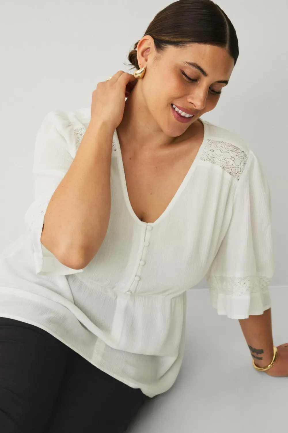 • Halvlangt ærme med svaj