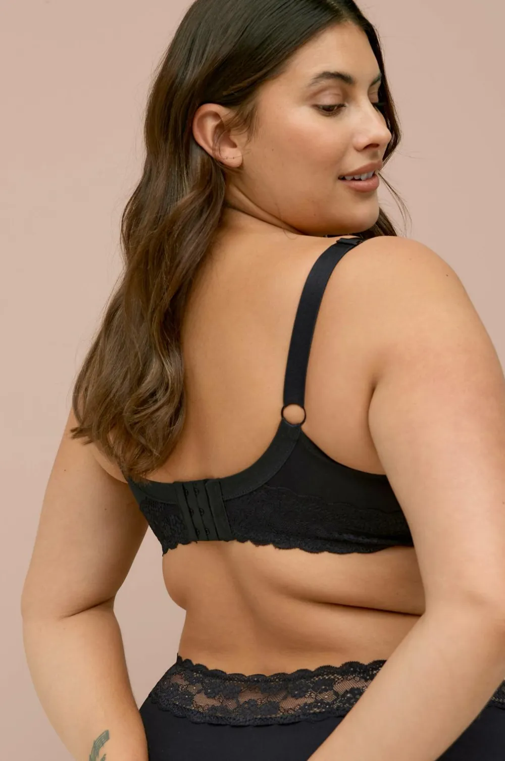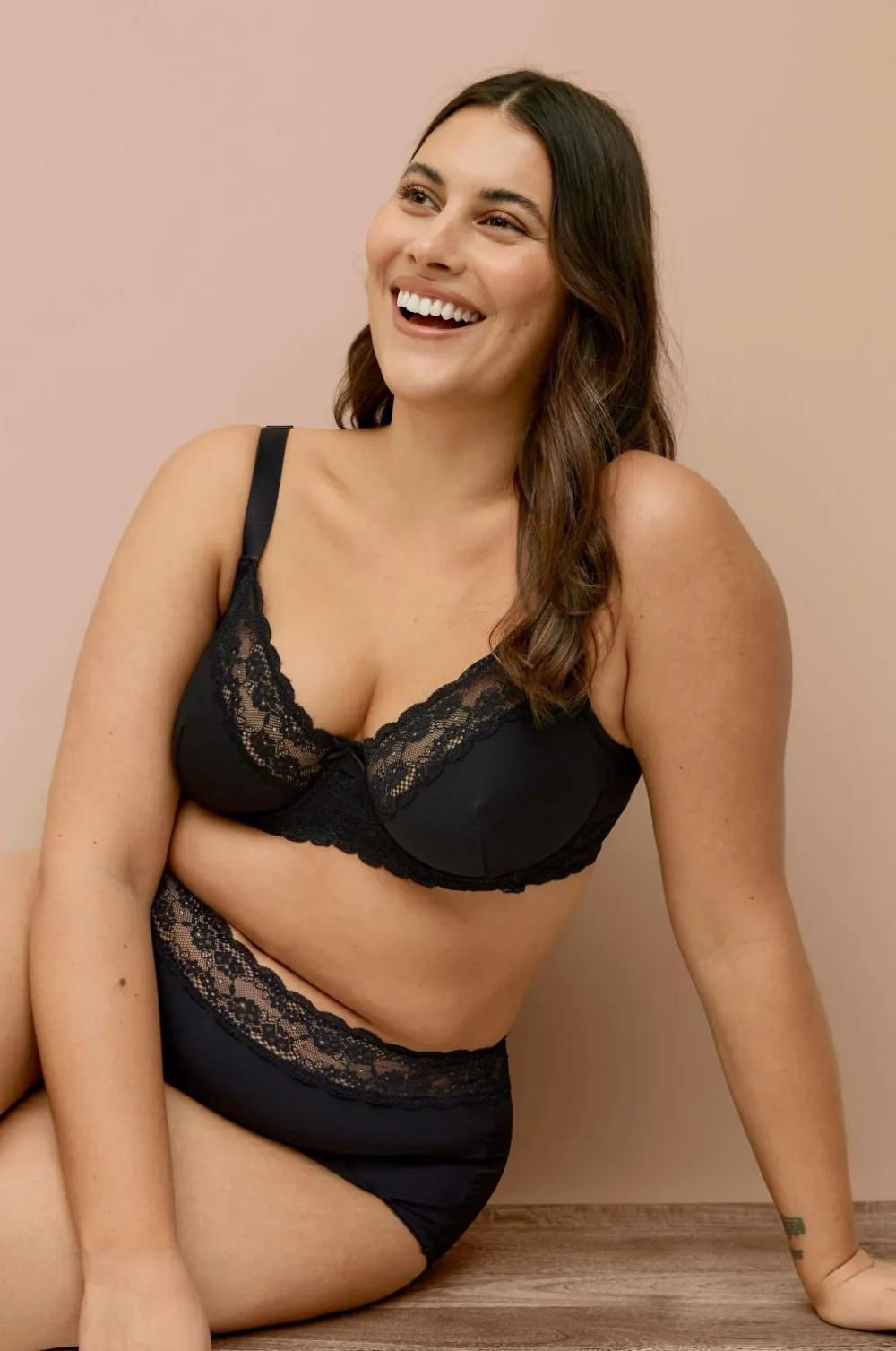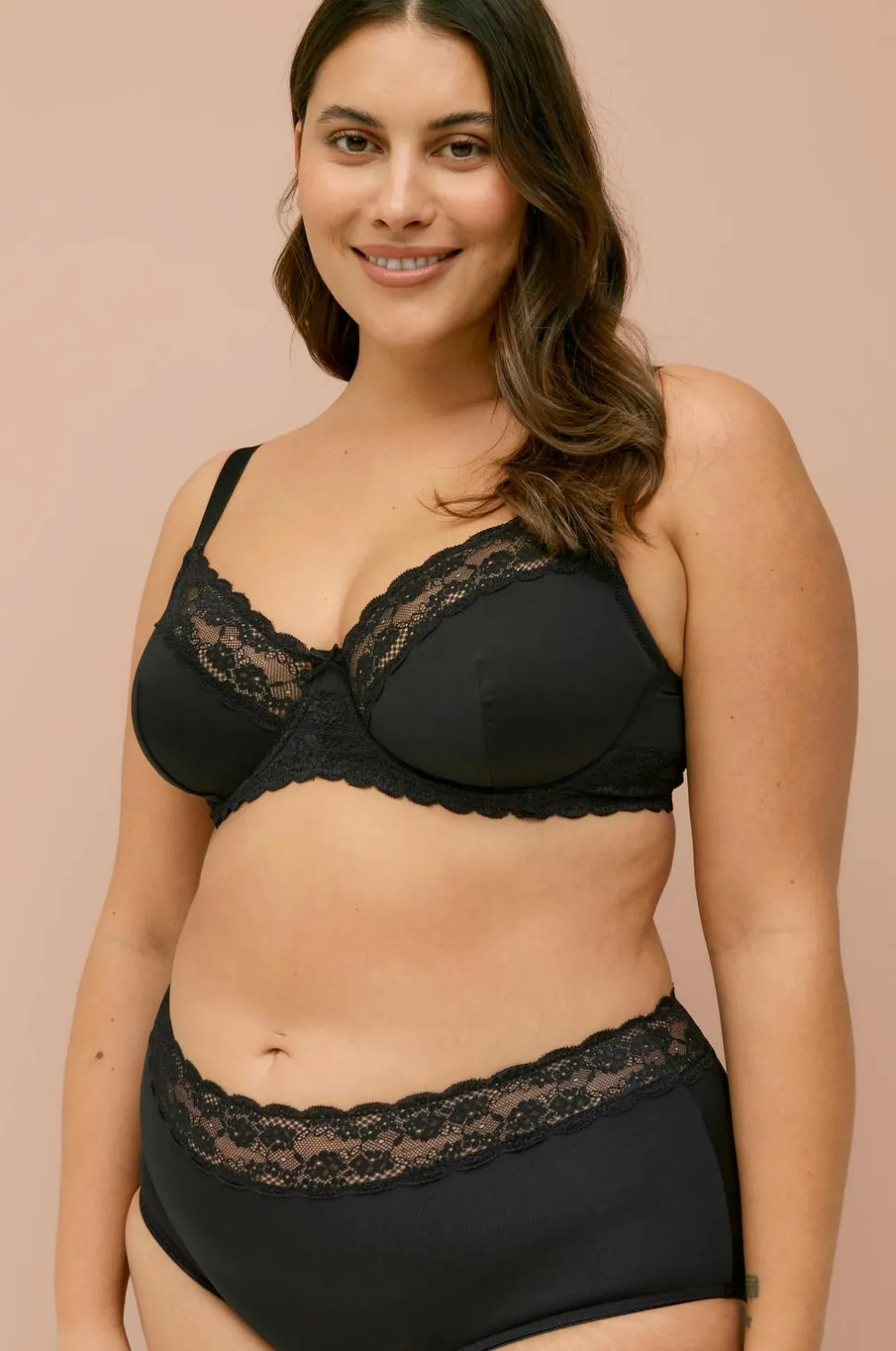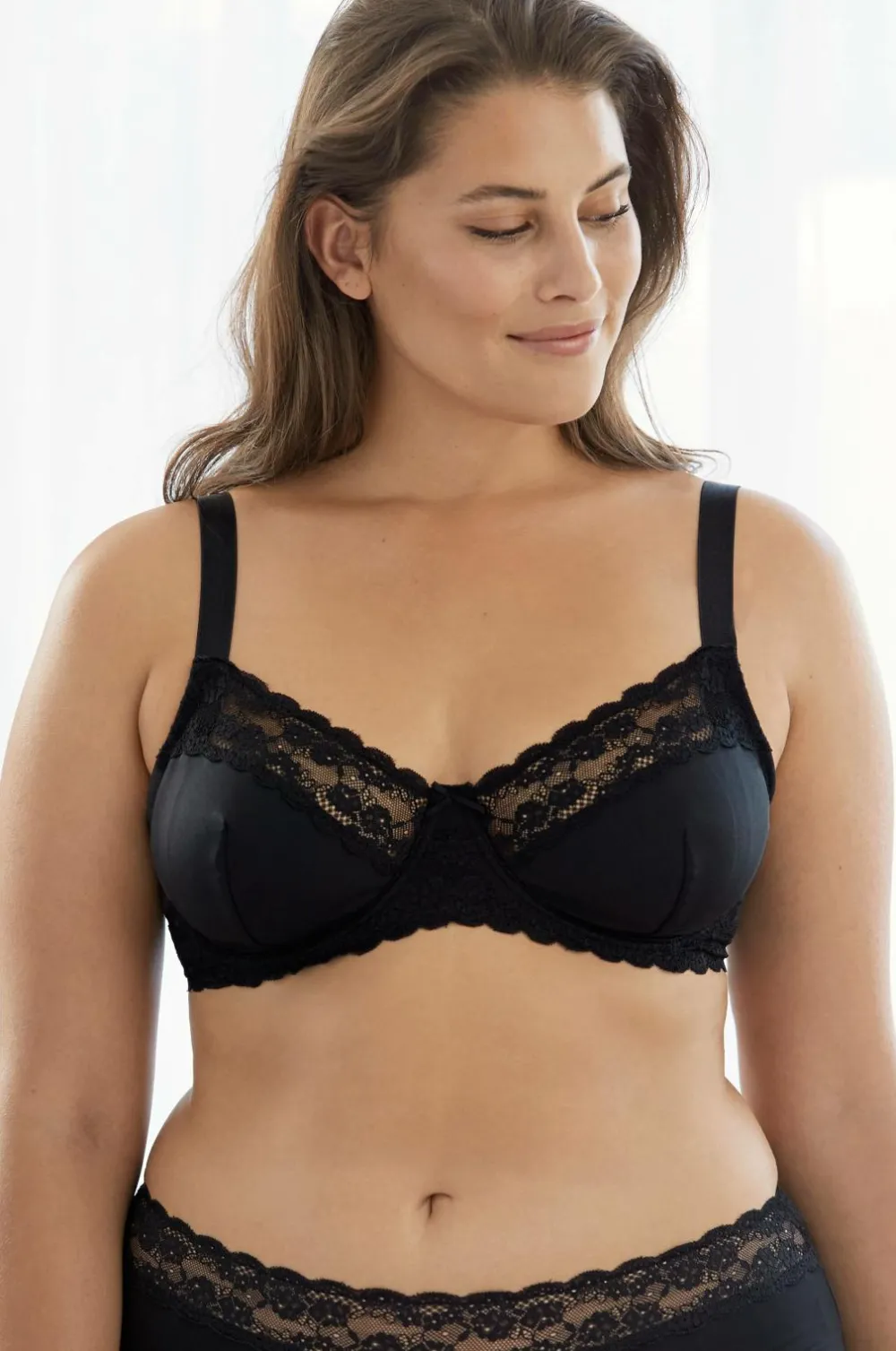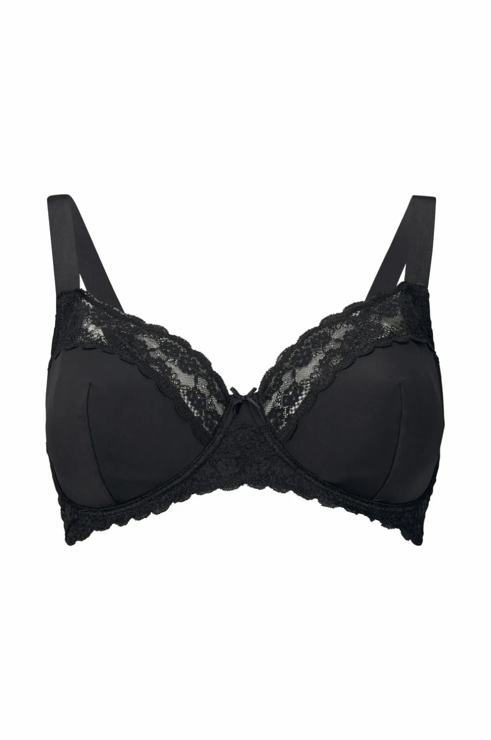 Bøjle-bh Melissa i mikrofiberkvalitet med printet blomstermønster, blondekanter på skålene og blondebeklædt ryg. Lille sløjfe mellem skålene. Regulerbare skulderstropper samt bred lukning i ryggen.