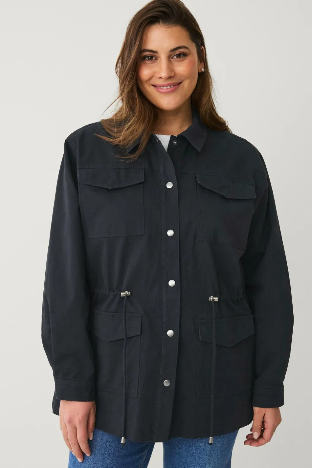 • Foret cargojakke med træksnørre ved taljen
