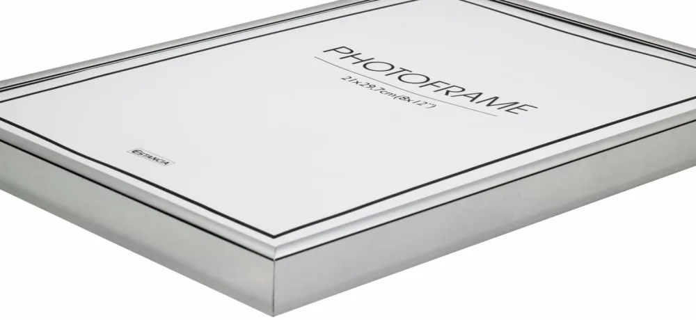 Ramme i aluminium. Profilen er 9 mm bred og 19 mm dyb. Clips på bagsiden gør samling enkel. Rammen leveres med brudsikkert krystalklart plexiglas hvilket giver rammen en lav vægt. Denne ramme passer til plakater i samme størrelse.