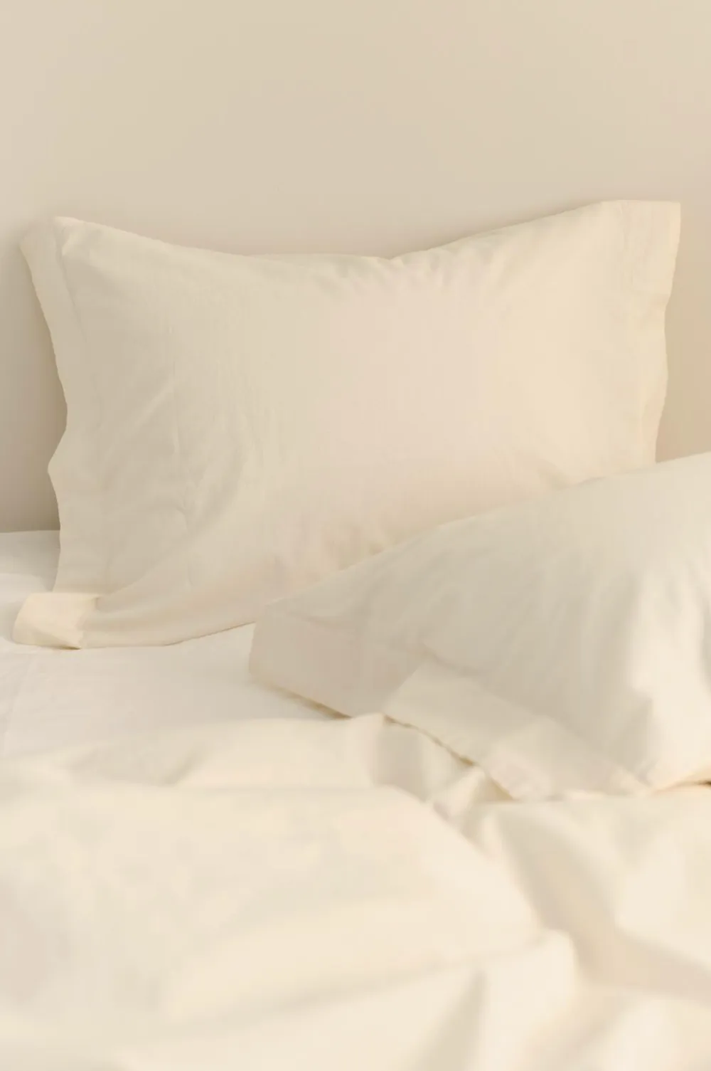 Pudebetræk i skøn kvalitet af blødvasket bomuld. Trådtæthed 144 tc. Stykfarvet. Str. pudebetræk 50×60 cm + 5 cm vinge på kortsiderne.