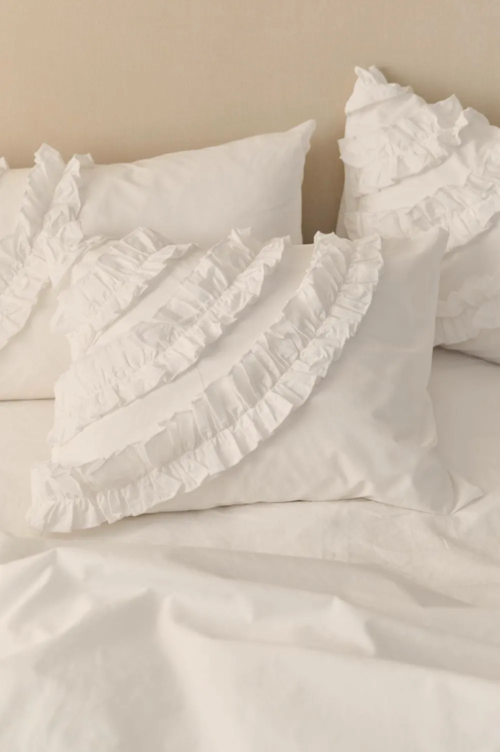 Ellos Pudebetræk>Home Pudebetræk Juliette Curve Frill i vasket bomuld Hvid