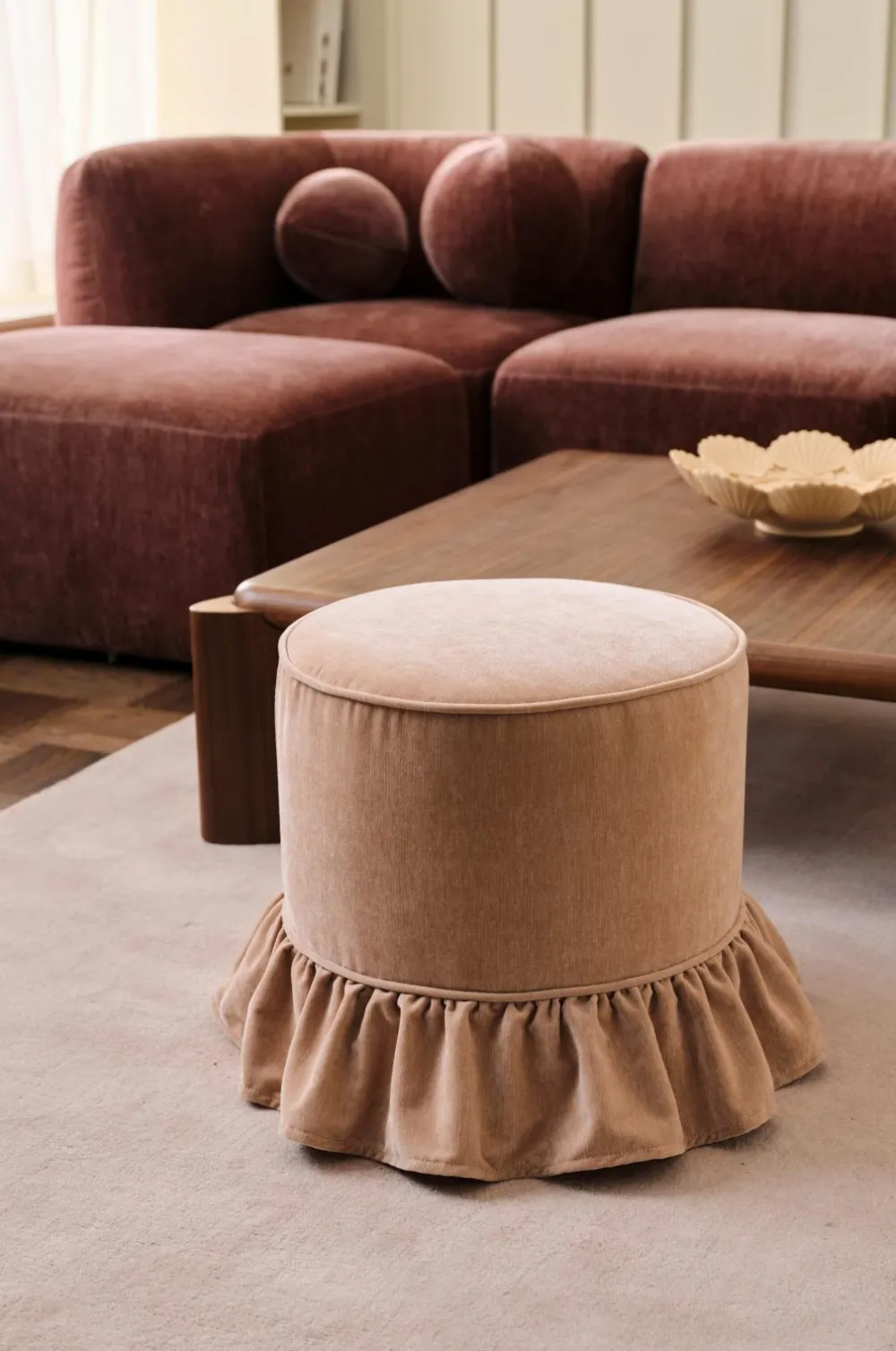 • Polstring i let skinnende chenille