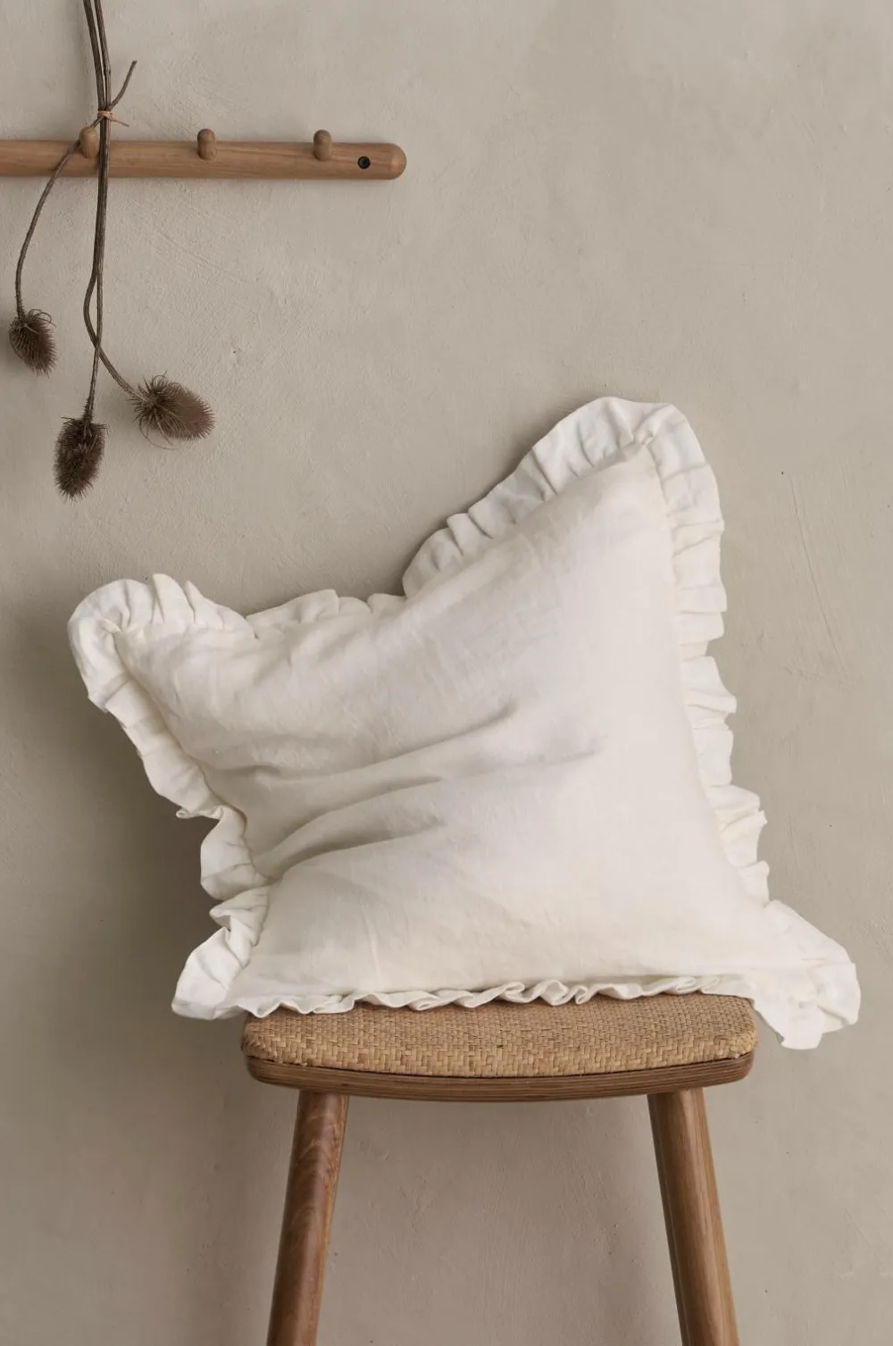 Ellos Pyntepuder & Betræk>Home Pudebetræk Candice Frill i vasket hør Hvid