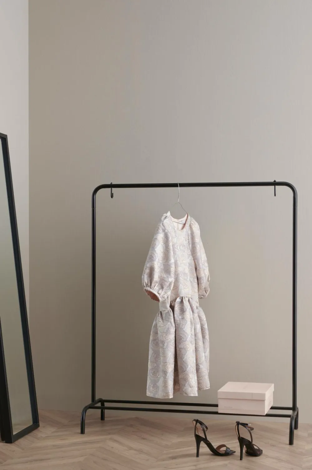 Tøjstativ af metal med 2 knager. Højde 131 cm. Bredde 110 cm. Dybde 40 cm. Lev. usamlet. Maks. belastning 8 kg.