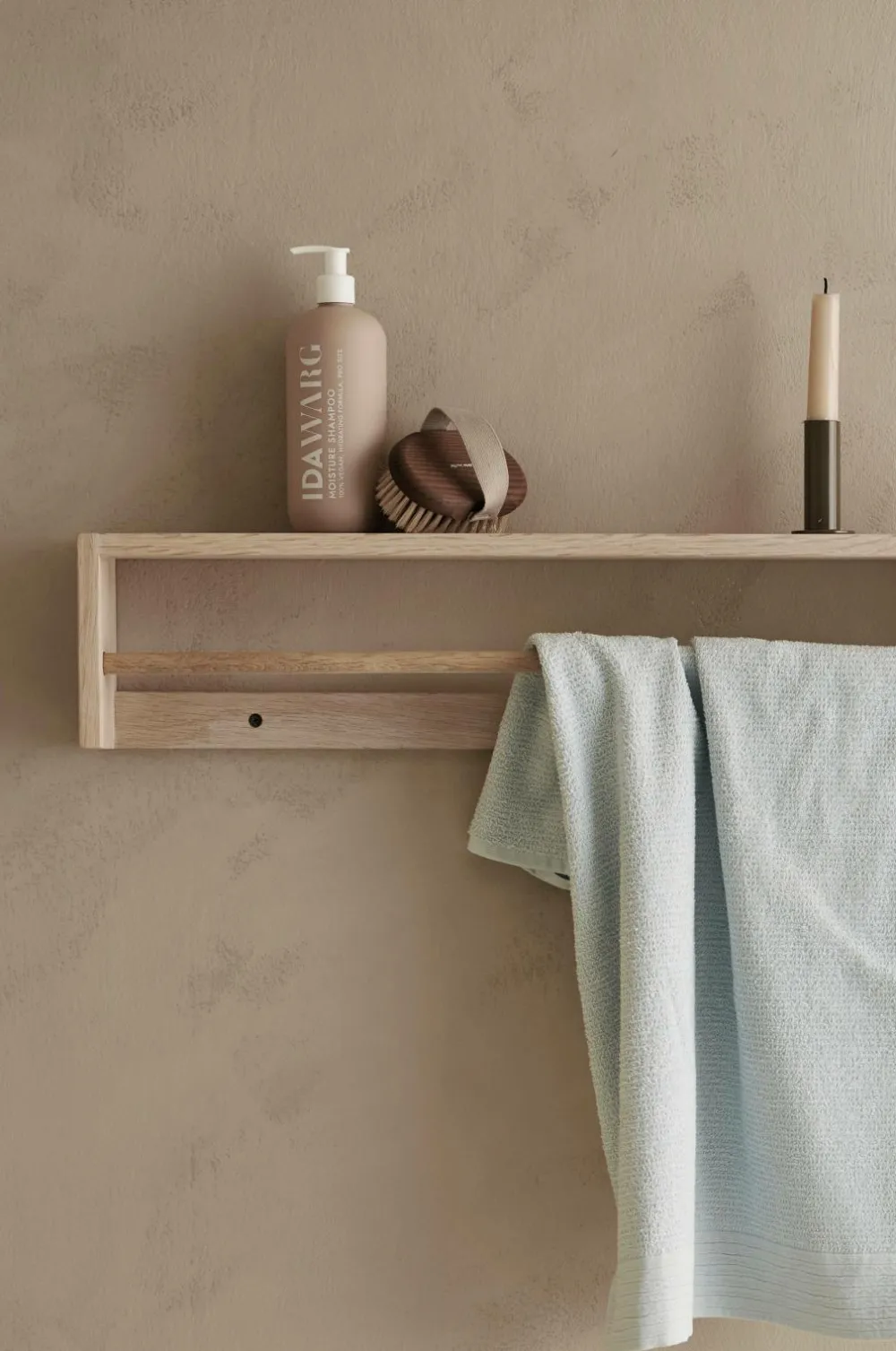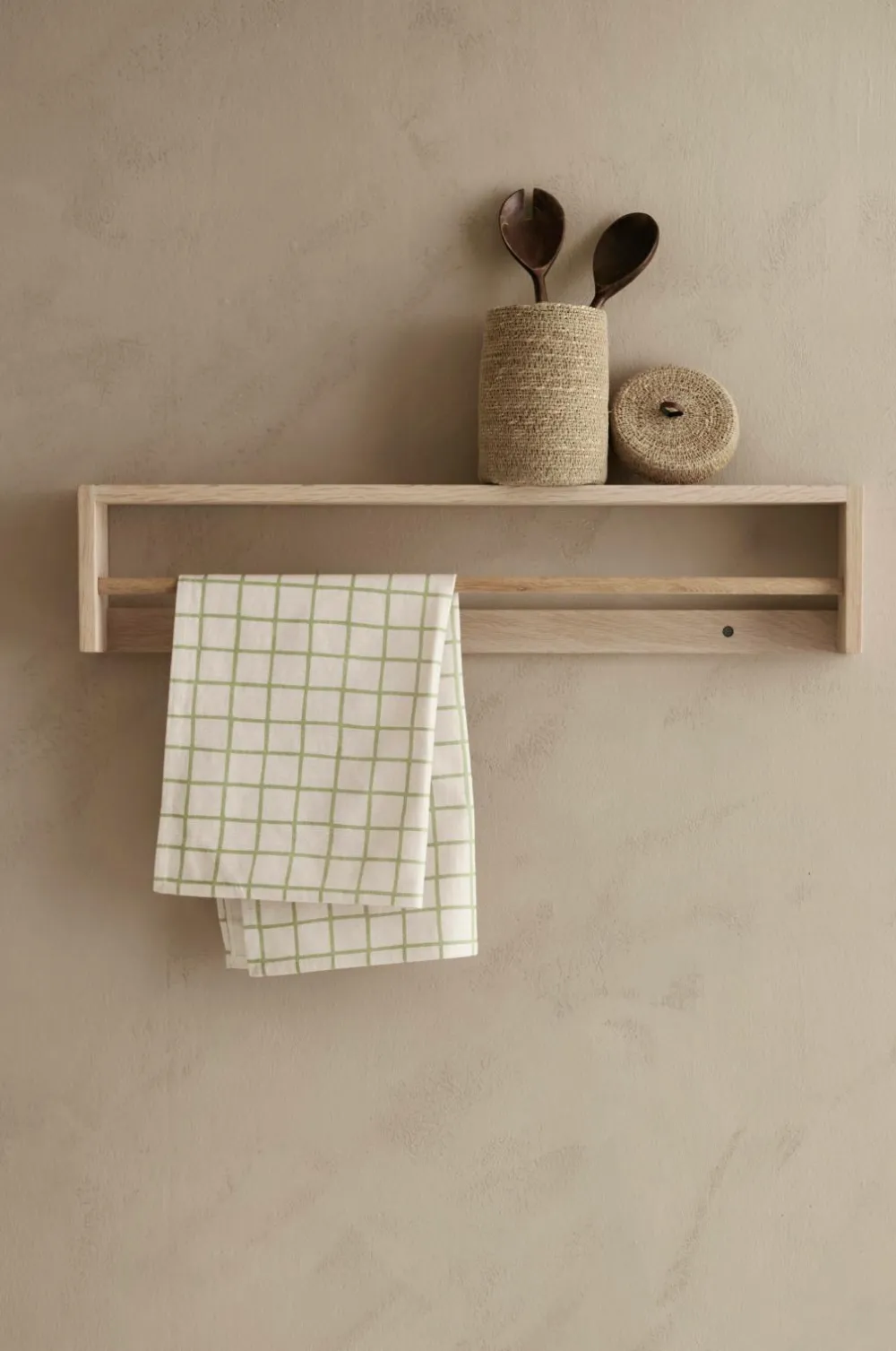 En mindre hylde/knagerække som er vendbar og kan hænges på to måder. Det gør at den har mange anvendelsesområder, f.eks. som håndklædeholder, krydderihylde, knagerække eller en minihylde til småting. Fremstillet af massiv, sæbebehandlet eg.